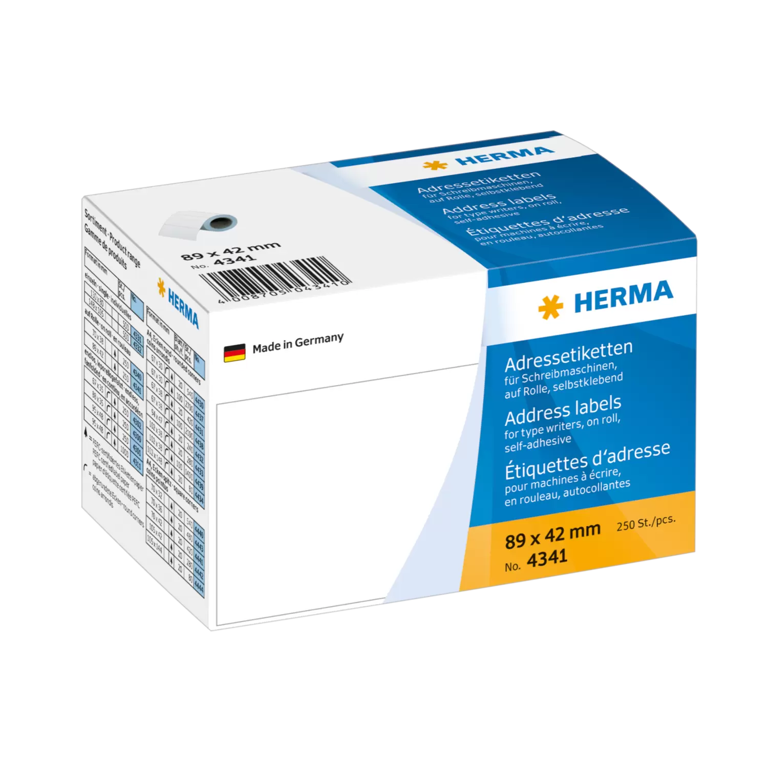 Adresetiketten voor schrijfmachines, op rol, 89 x 42 mm, wit, permanent hechtend