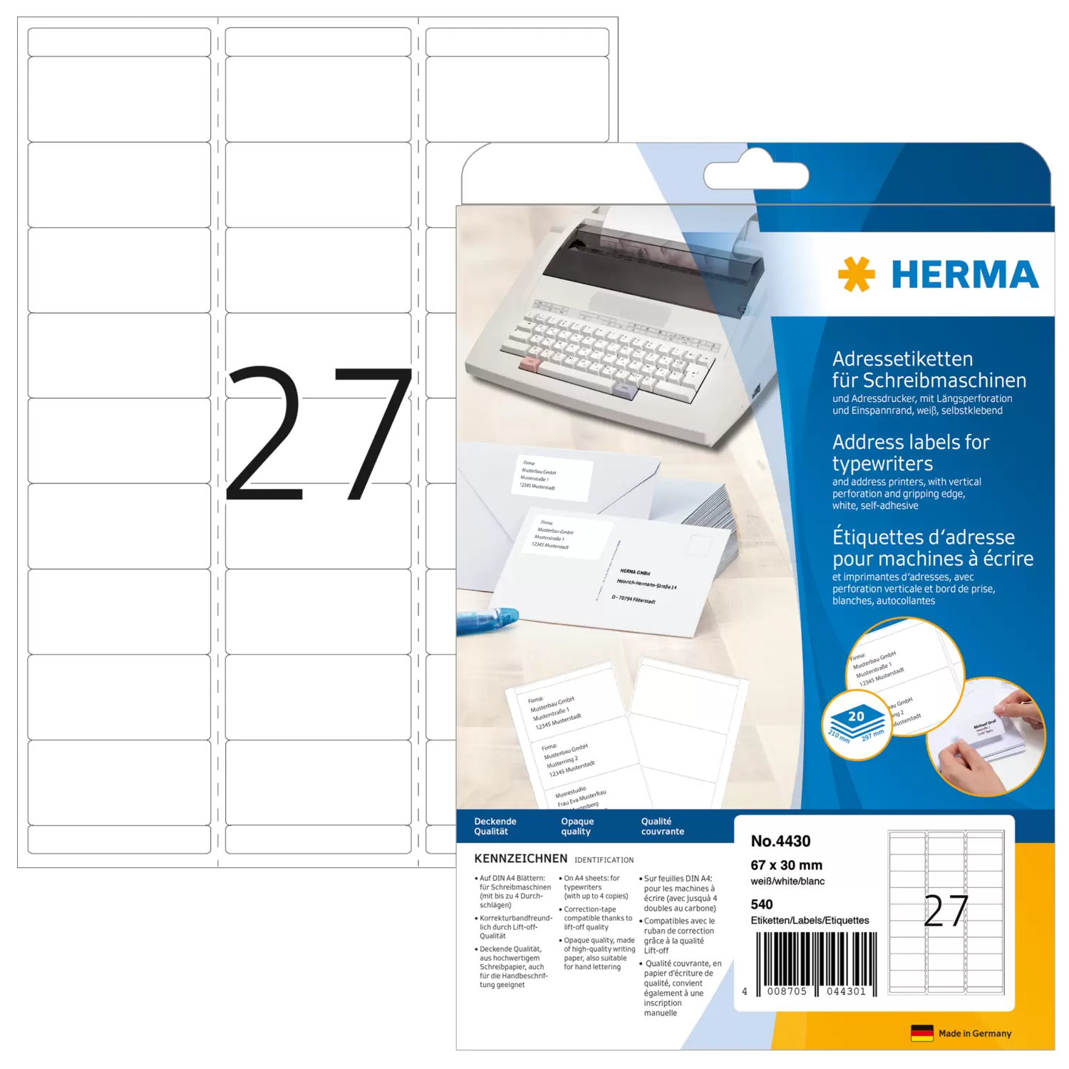 Adresetiketten voor schrijfmachines, A4, 67 x 30 mm, permanent hechtend