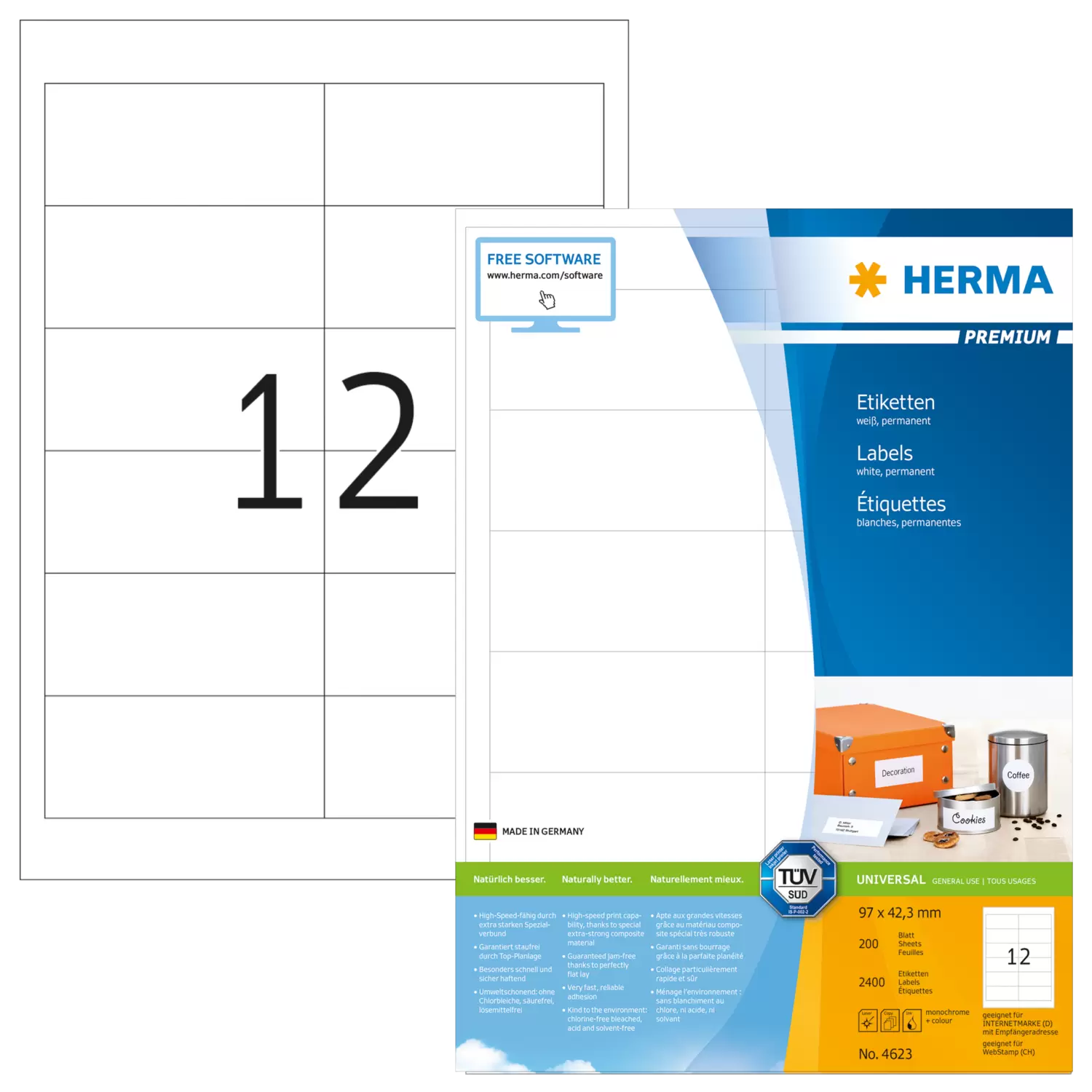 PREMIUM etiketten, A4, 97 x 42,3 mm, wit, permanent hechtend