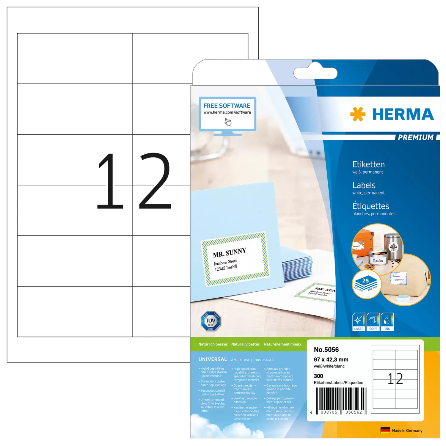 Inhoud: 300 etiketten / 25 vel