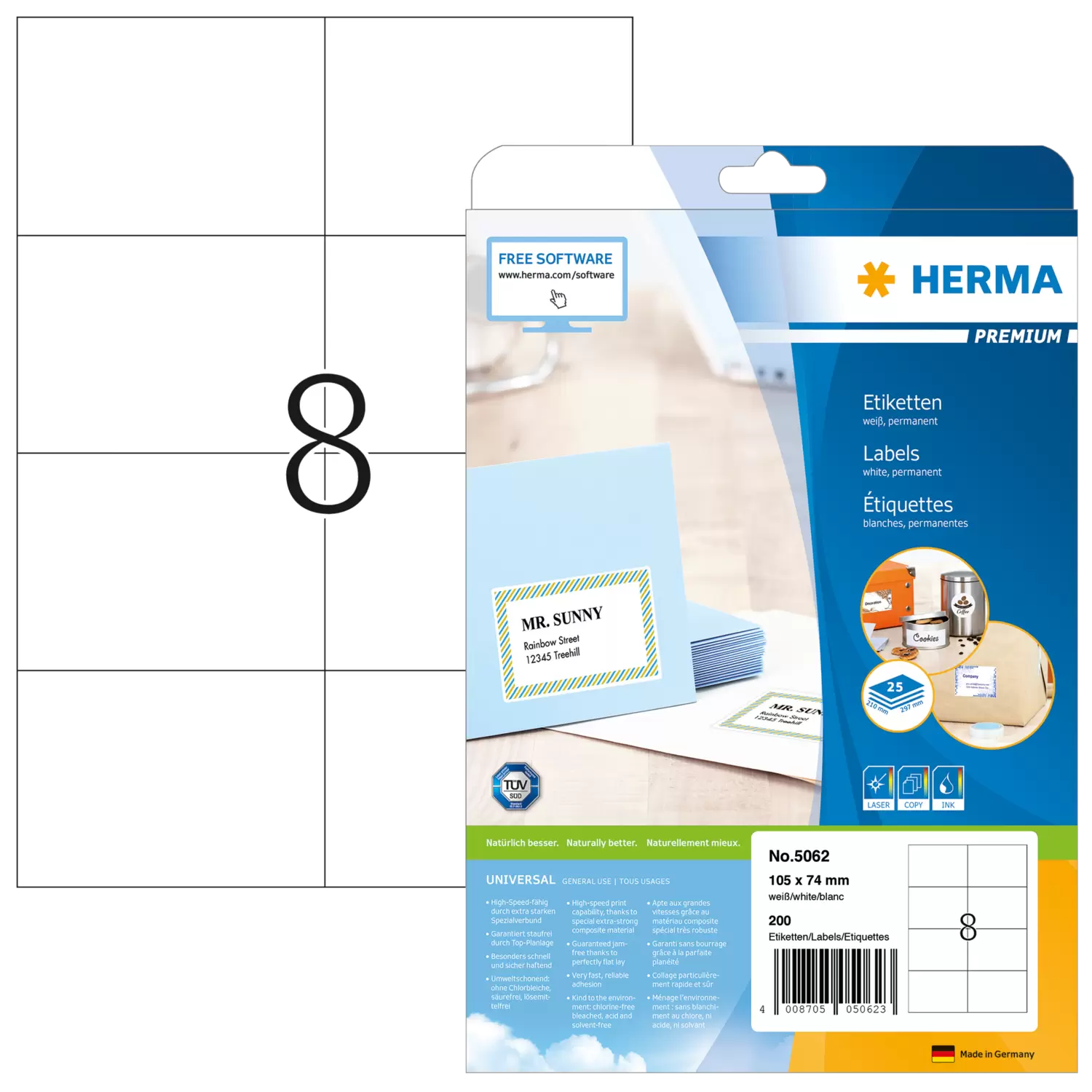 PREMIUM etiketten, A4, 105 x 74 mm, wit, permanent hechtend