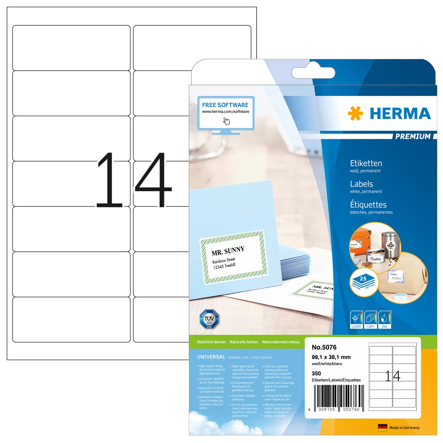 PREMIUM adresetiketten, A4, 99,1 x 38,1 mm, wit, permanent hechtend