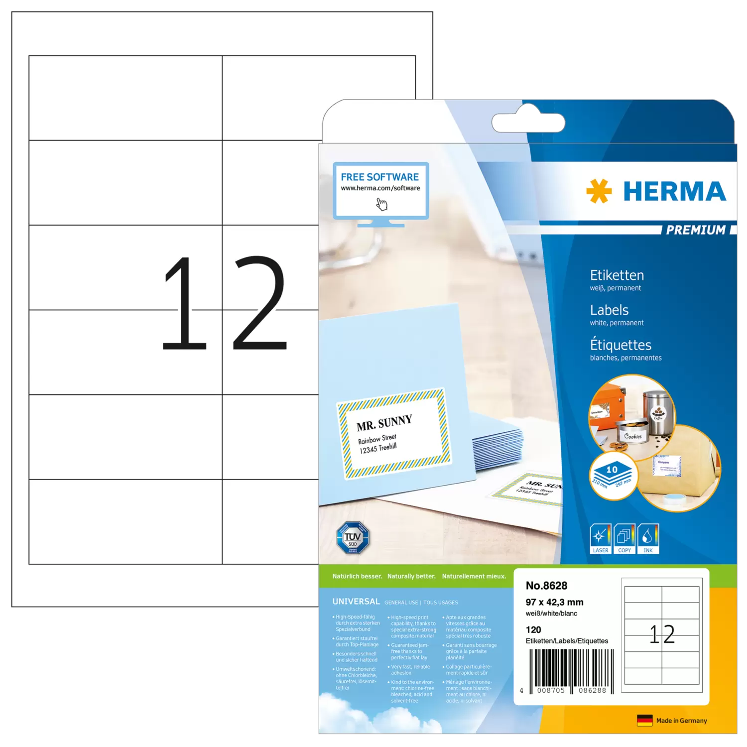 PREMIUM etiketten, A4, 97 x 42,3 mm, wit, permanent hechtend