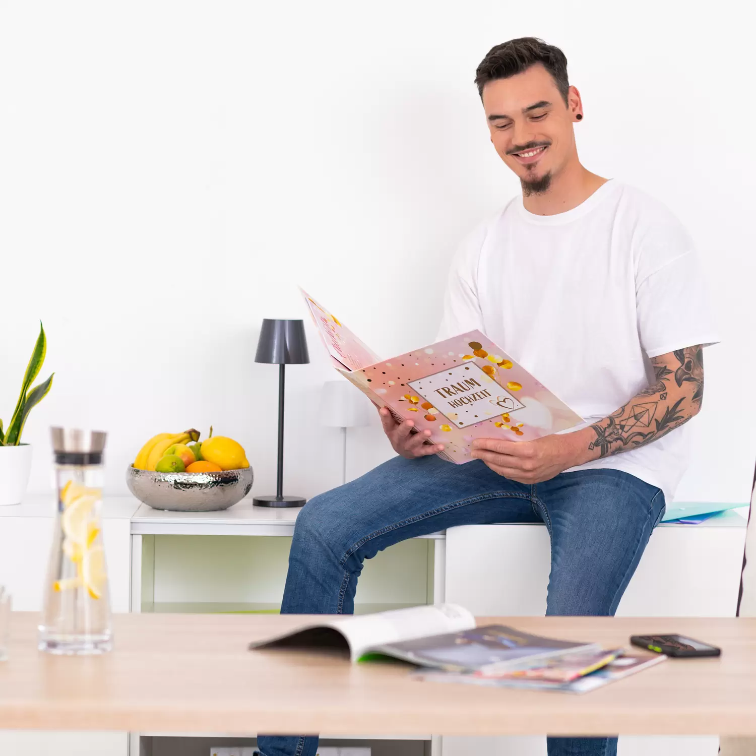 • Hoogwaardige foliegecoate bruiloftsplanner met modern rosékleurig design, doordacht en met oog voor detail