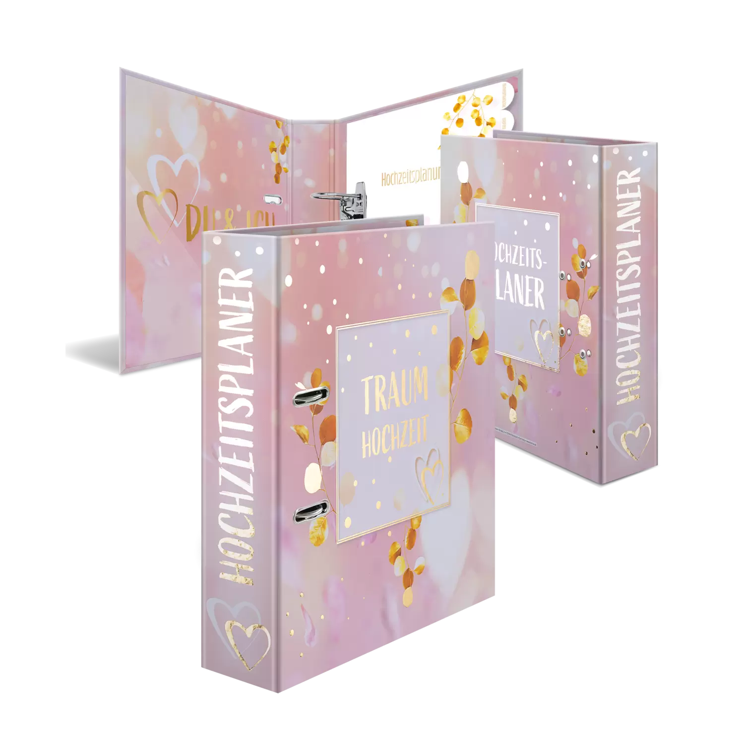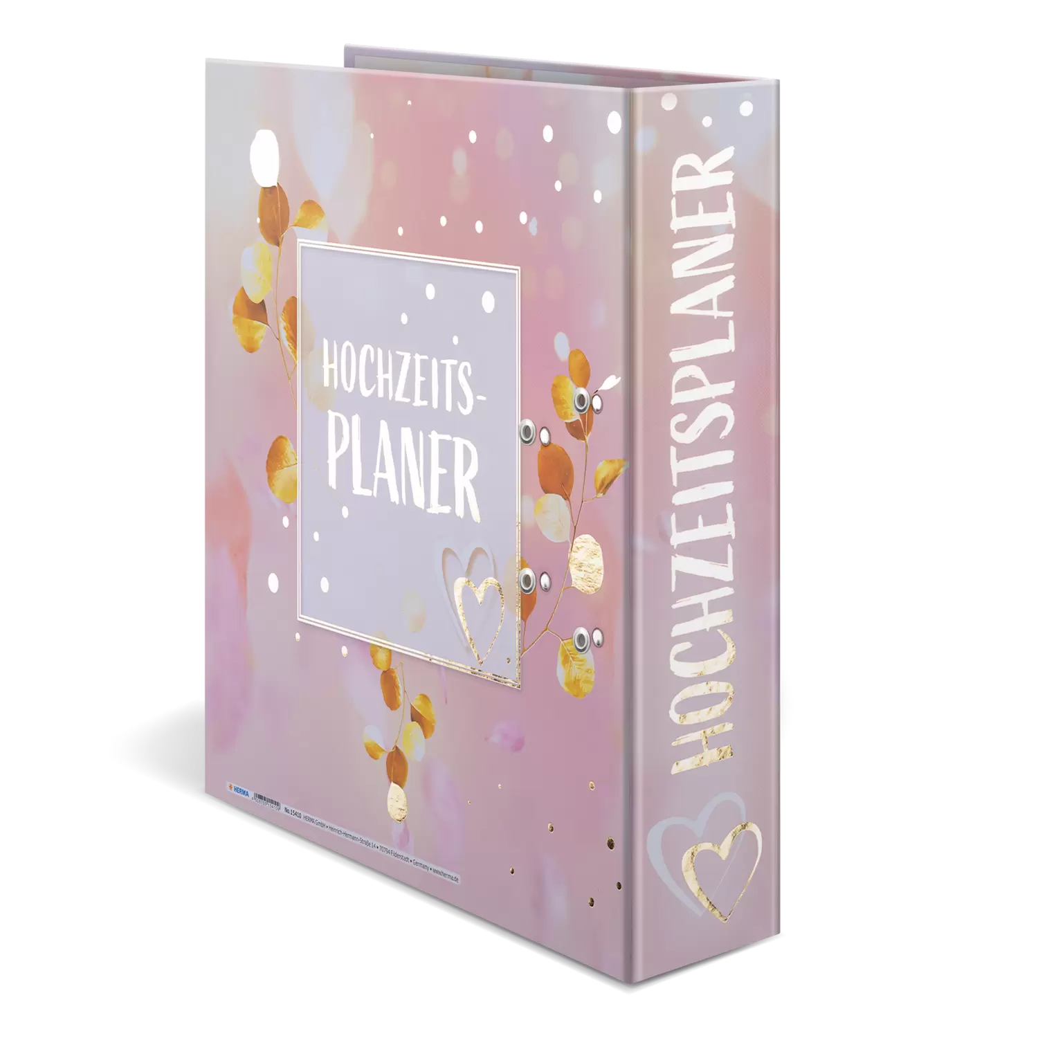 Weldra luiden de huwelijksklokken, de mooiste dag in het leven van twee geliefden komt dichter- en dichterbij. Maar voordat de droom van een perfecte bruiloft in vervulling kan gaan, moet u in de eraan vooraf gaande periode uw organisatietalent bewijzen. De bruiloftsplanner van HERMA helpt u daarbij. Er moet ongelooflijk veel worden gepland en georganiseerd: Waar vindt de huwelijksplechtigheid plaats? Wie wordt er uitgenodigd? Hoe gaat de tafeldecoratie eruit zien? Deze fraaie en modern gestylede ordner helpt u bij het archiveren van alle belangrijke documentatie voor de bruiloft en zorgt ervoor dat er geen papieren, lijsten of notities verloren gaan. In handzaam DIN A4-formaat kan hij gemakkelijk overal mee naartoe worden genomen, zodat u alle noodzakelijke stukken altijd bij de hand hebt. Het hoogwaardige hefboommechaniek en de metalen klem houden de inhoud van de ordner stevig bij elkaar, zodat deze niet smerig kan worden of eruit kan vallen. Het geïllustreerde en overzichtelijke register helpt u bij de planning en bevat alle punten die belangrijk zijn voor een bruiloft, zoals de organisatie van de tafeldecoratie, van de catering, de gastenlijst en nog veel meer. U hebt uw afspraken onmiddellijk, altijd en overal bij de hand. Met de 60 mm brede ordnerrug en het formaat 300 x 315 is er voor voldoende ruimte gezorgd.