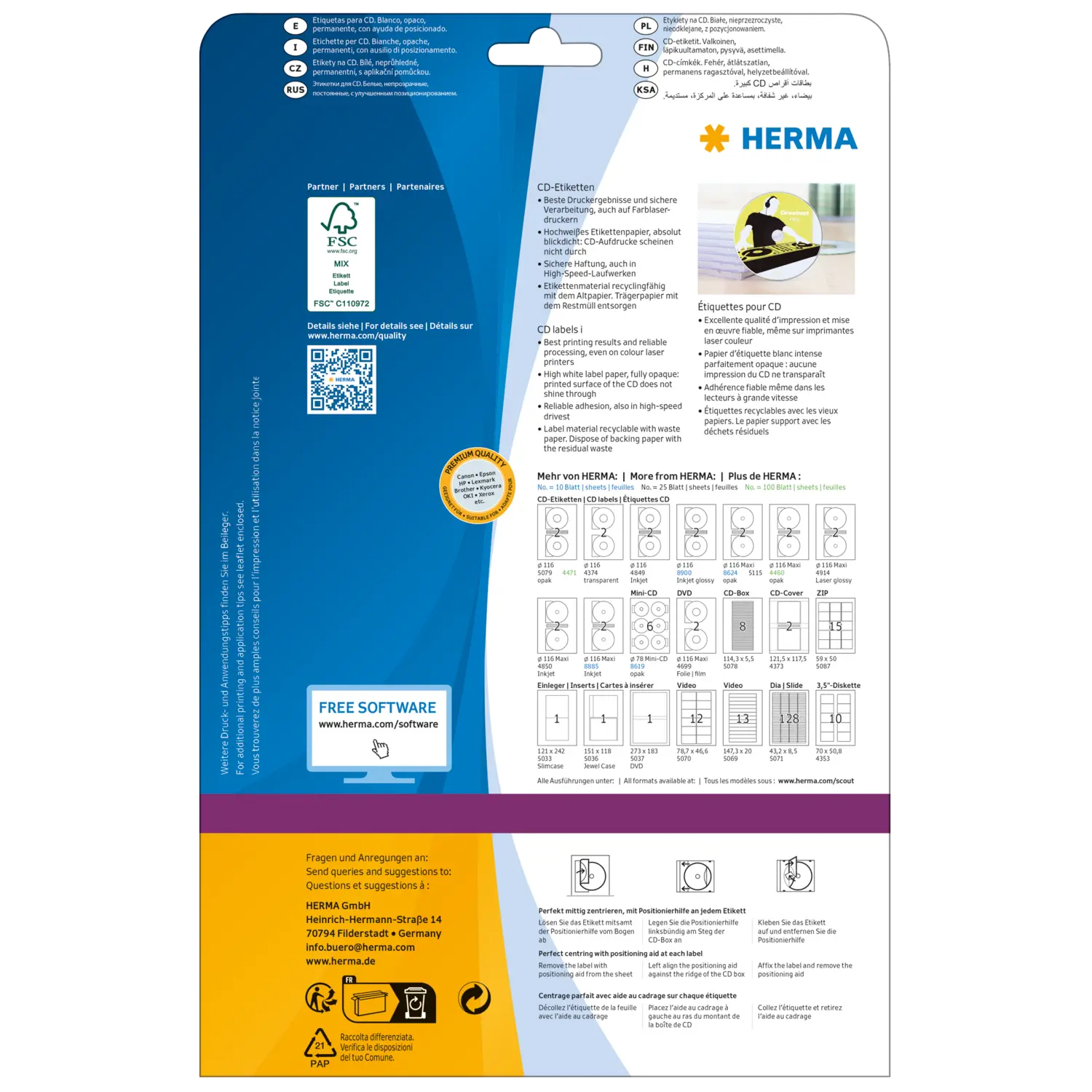 - Eenvoudig in het midden opplakken dankzij de positioneerhulp op elk etiket, goede hechting, ook in high-speed-stations