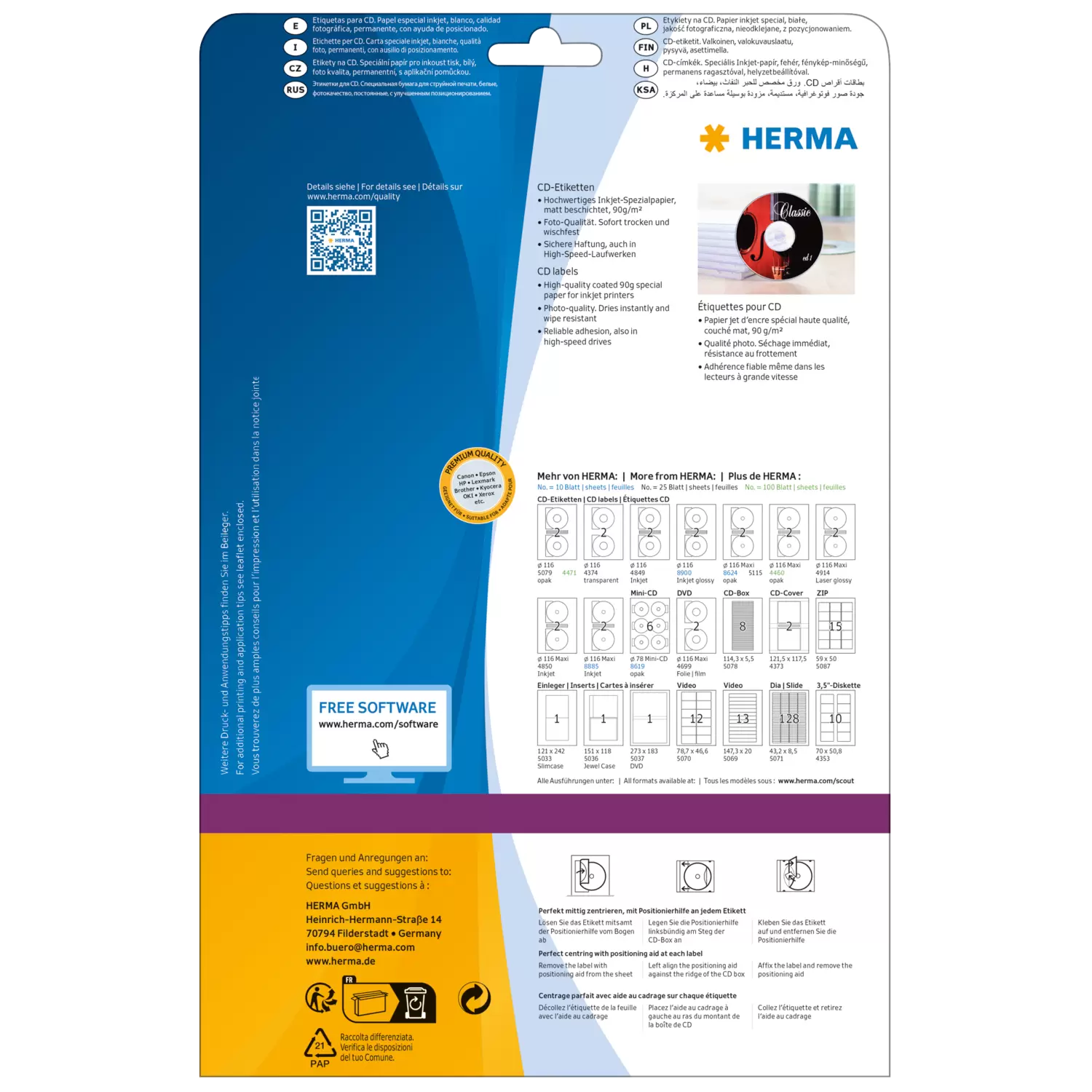 U wilt uw etiket met Word opmaken? Download dan bij elk HERMA etiket het passende sjabloon – u hoeft dan niets meer uit te meten of in te stellen. En u kunt in uw vertrouwde programma doorwerken. De functies daarvan blijven onbeperkt tot uw beschikking staan. Comfortabeler gaat niet.