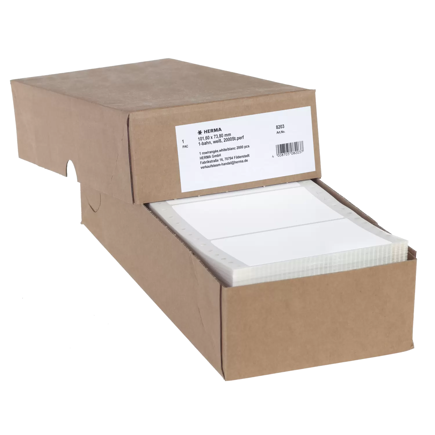 Computeretiketten doorlopend, 101,6 x 73,8 mm, 1-baans, wit, met perforatie, permanent hechtend