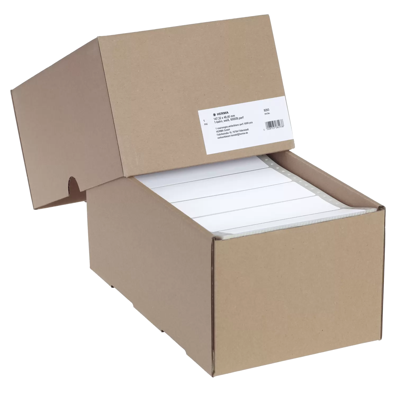 Computeretiketten, doorlopend, met pinfeedrand. In de beste kwaliteit: gegarandeerd doorlopend, zonder onderbreking. Storingsvrije doorloop, perfecte afdrukresultaten en vouwt na bedrukking altijd automatischweer op tot een keurige stapel. Hoogwaardig, houtvrij schrijfpapier, chloorvrij gebleekt, oplosmiddelvrije contactlijm. Witte etiketten met FSC® Mix Credit certificaat. Sterk hechtend, ook op kritische oppervlakken.