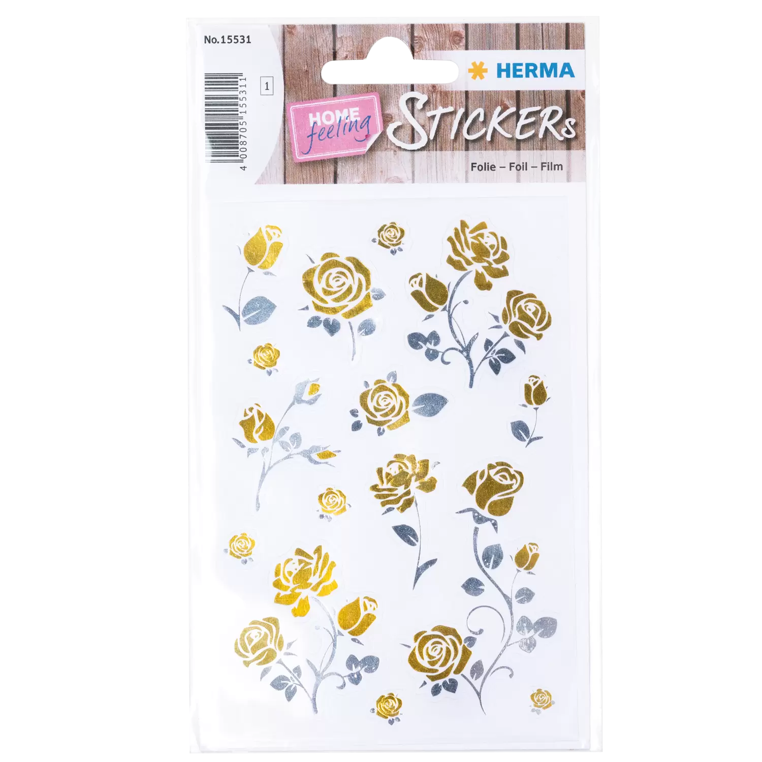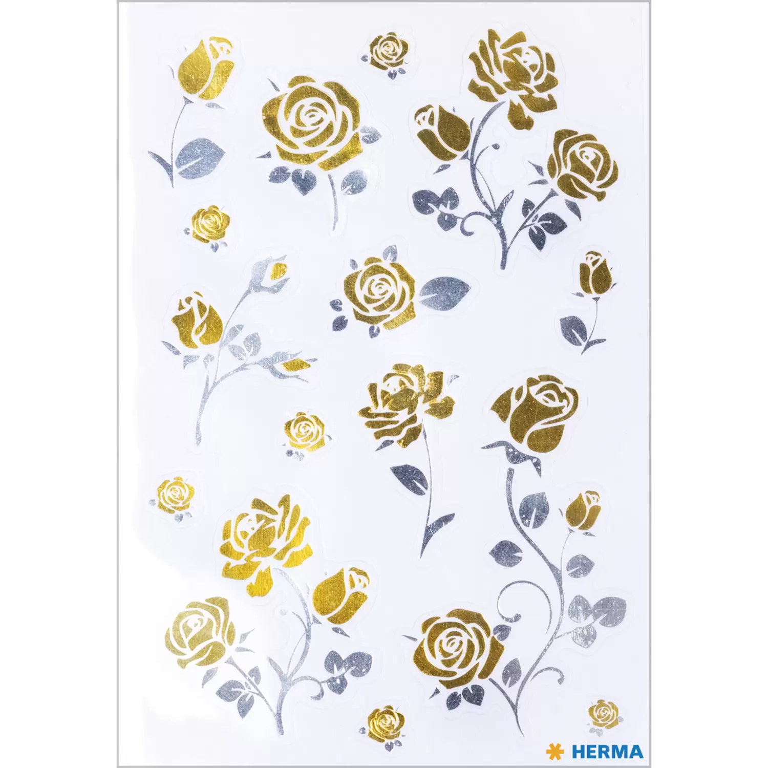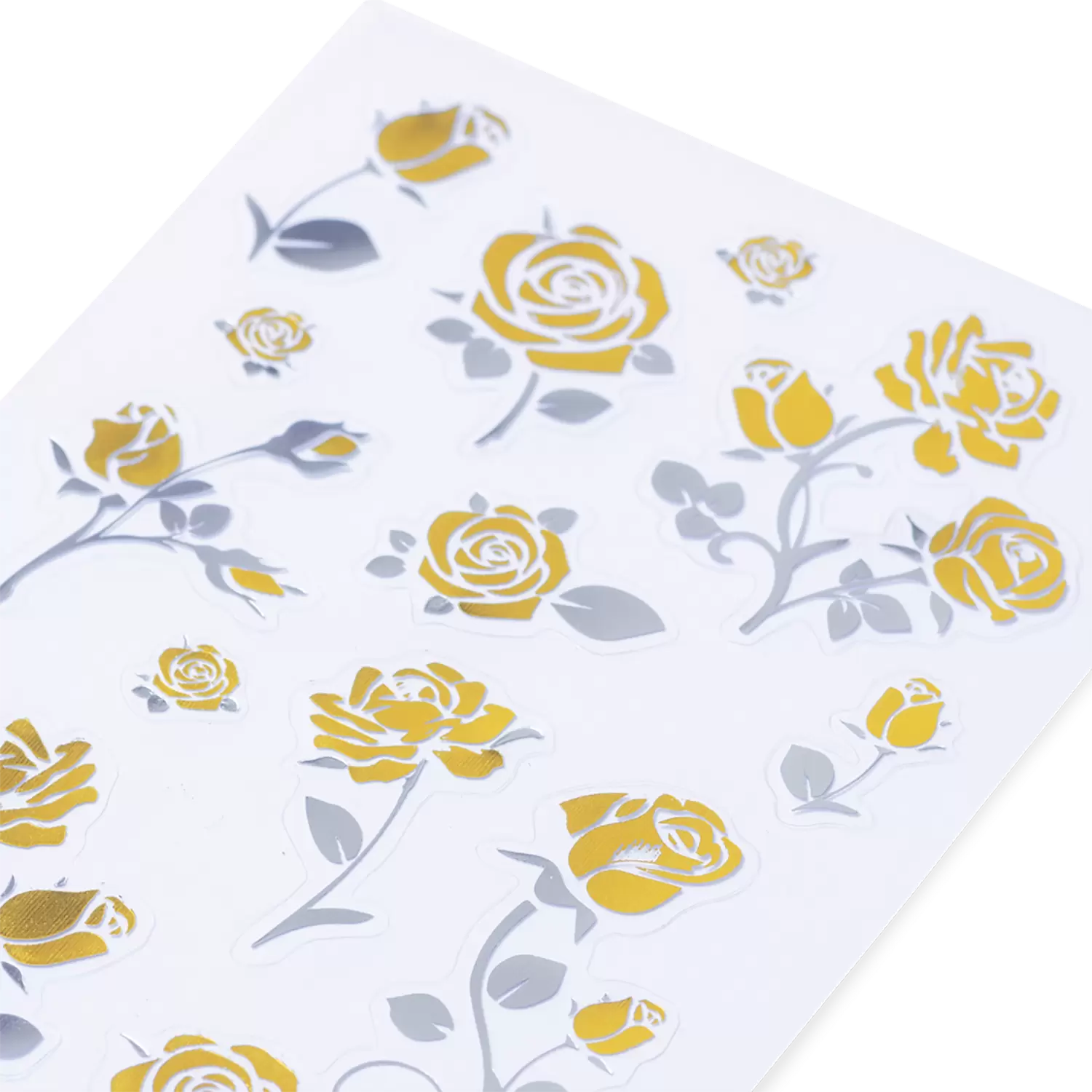 • Prachtige roos-stickers van transparante folie in goud en zilver
