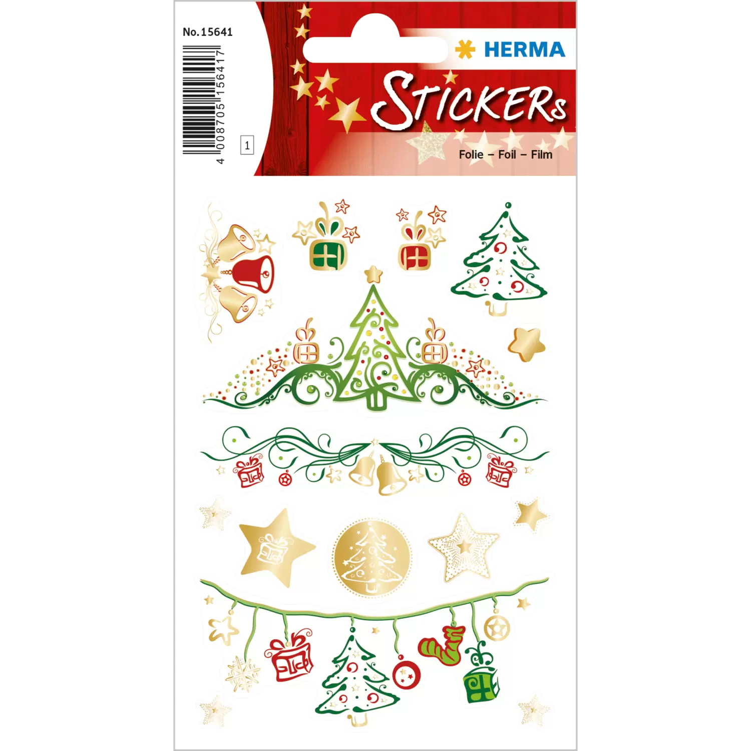 Gekrulde ornamenten, feestelijke klokken, versierde kerstbomen, sterren en cadeaus – kerststemming in stickers. Deze sticker-set met hoogwaardige goud- en zilverfolie maakt van elk cadeautje een uitpak-highlight.