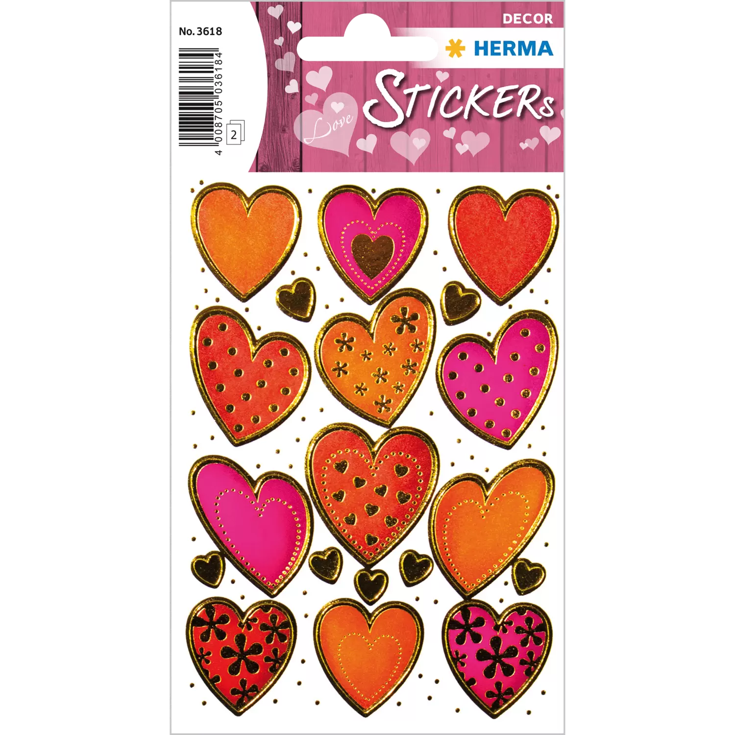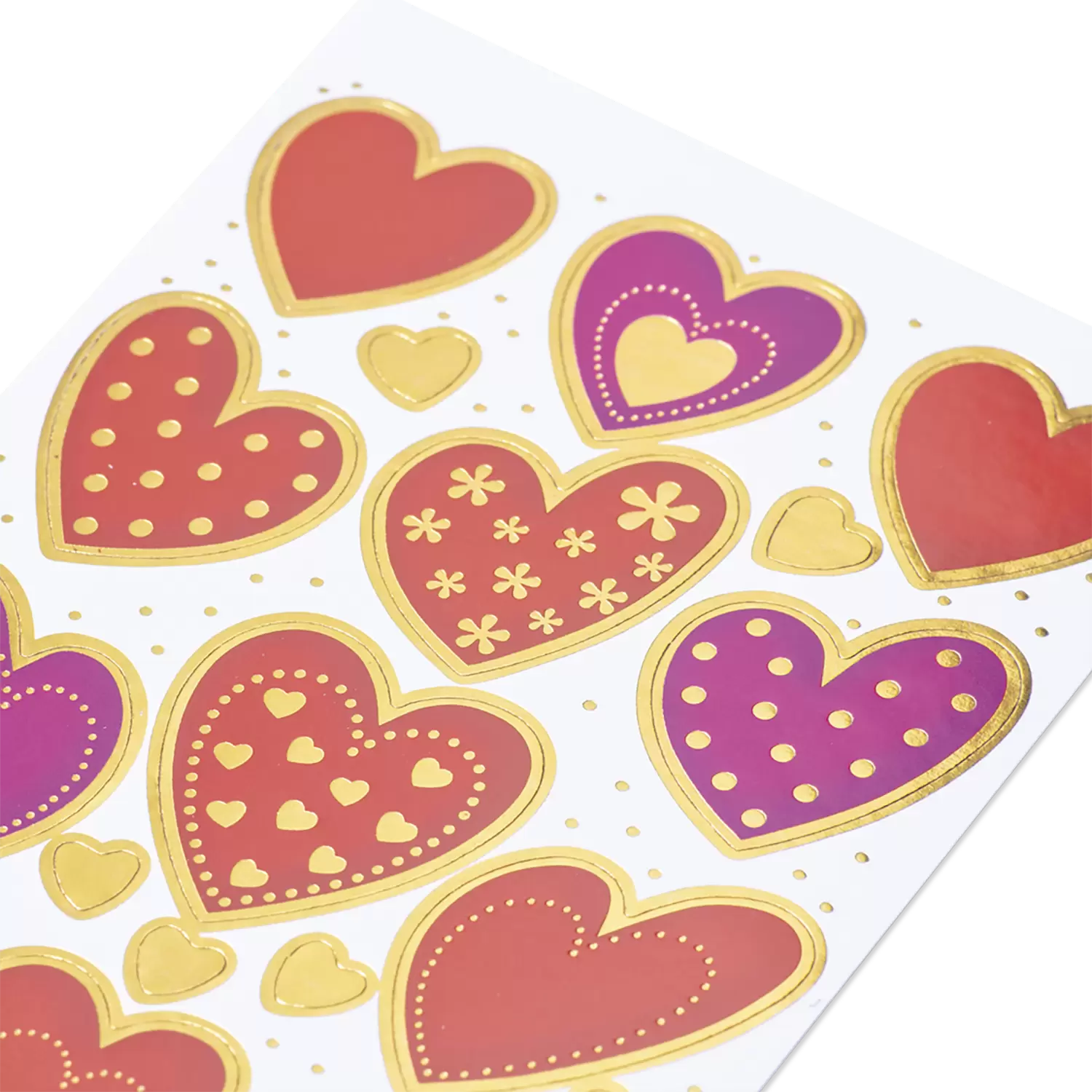 Zelfklevende decoratieve papieren etiketten, met hartjes motieven. Om te verzamelen of voor het ontwerpen en versieren van geschenken, brieven, etc.