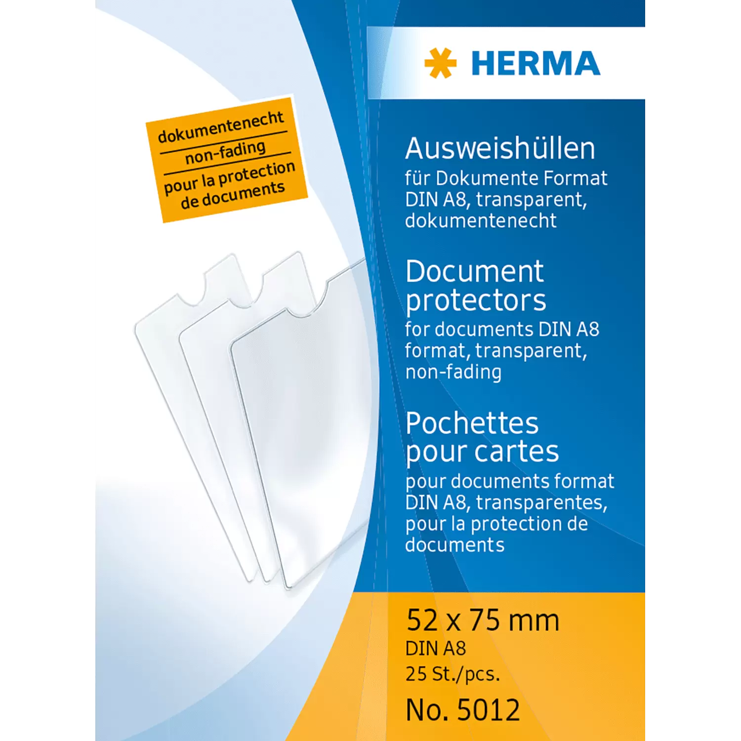 Documenten, ID-kaartjes en bankpasjes, creditcards en andere belangrijke pasjes moeten goed beschermd en veilig worden bewaard. Het HERMA insteekhoesje van transparante polypropyleen-folie is optimaal geschikt voor ID-kaartjes & meer in het formaat DIN A8 (52 x 75 mm). Het hoesje is zeer duurzaam en robuust, documentecht, scheurvast, geurvrij en beschermt tegen vocht, vuil en slijtage, ook onderweg in de portemonnee, in de handtas of broekzak. Dat is HERMA-kwaliteit 'Made in Germany'.