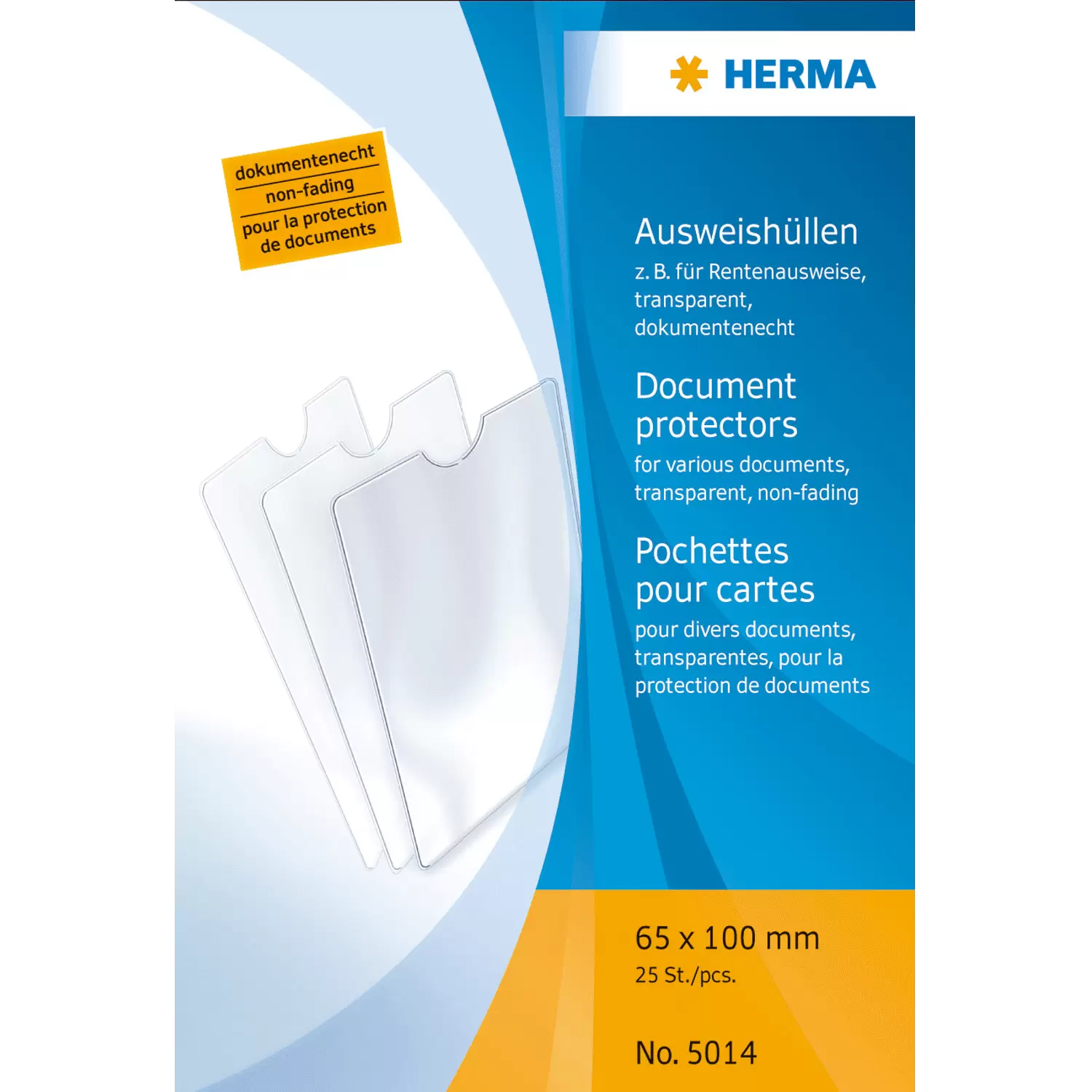 Documenten, ID-kaartjes en bankpasjes, creditcards en andere belangrijke pasjes moeten goed beschermd en veilig worden bewaard. Het HERMA insteekhoesje van transparante polypropyleen-folie is optimaal geschikt voor seniorenpasjes & meer in het formaat 65 x 100 mm. Het hoesje is zeer duurzaam en robuust, documentecht, scheurvast, geurvrij en beschermt tegen vocht, vuil en slijtage, ook onderweg in de portemonnee, in de handtas of broekzak. Dat is HERMA-kwaliteit 'Made in Germany'.