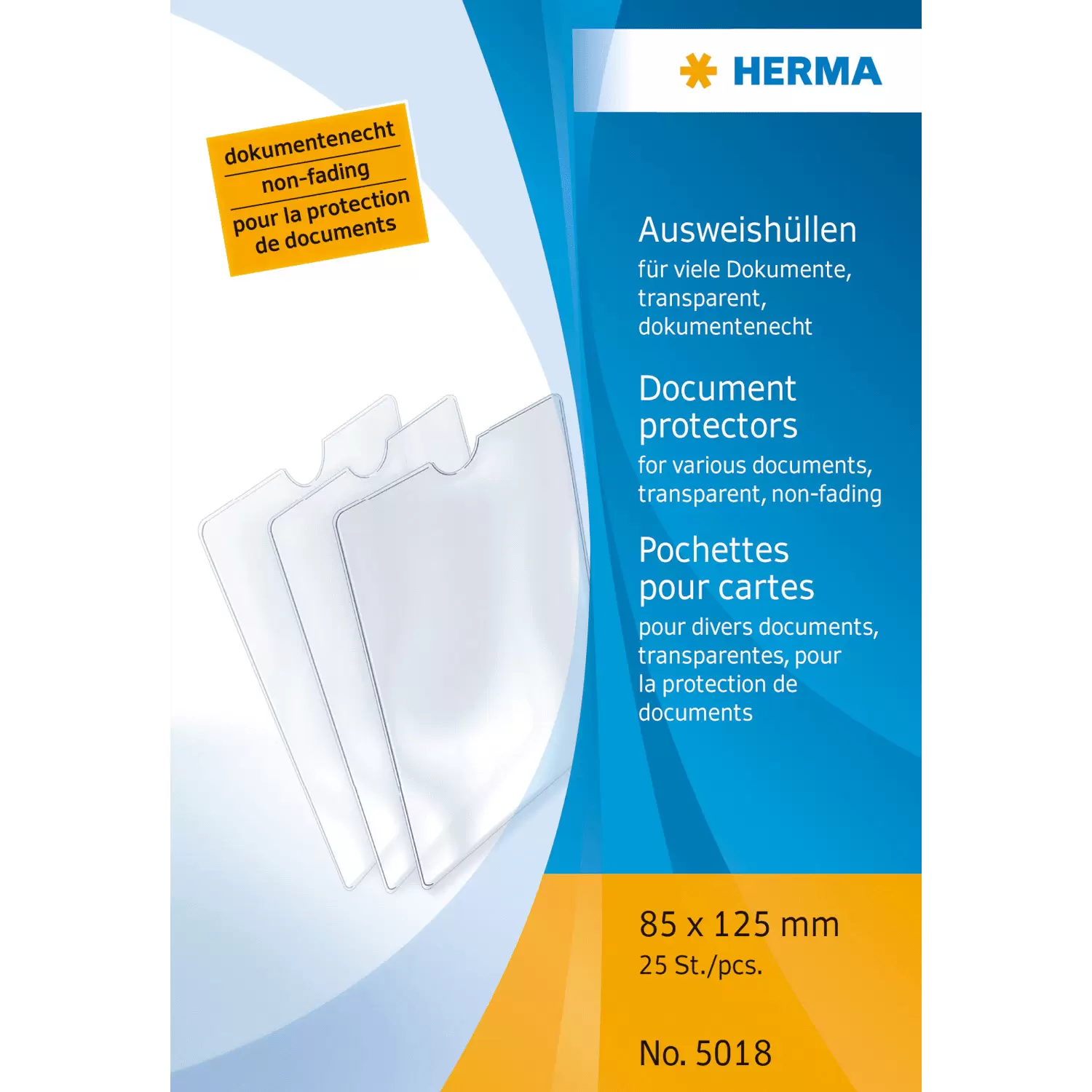 Documenten, ID-kaartjes en bankpasjes, creditcards en andere belangrijke pasjes moeten goed beschermd en veilig worden bewaard. Het HERMA insteekhoesje van transparante polypropyleen-folie is optimaal geschikt voor documenten & meer in het formaat 85 x 125 mm. Het hoesje is zeer duurzaam en robuust, documentecht, scheurvast, geurvrij en beschermt tegen vocht, vuil en slijtage, ook onderweg in de portemonnee, in de handtas of broekzak. Dat is HERMA-kwaliteit 'Made in Germany'.