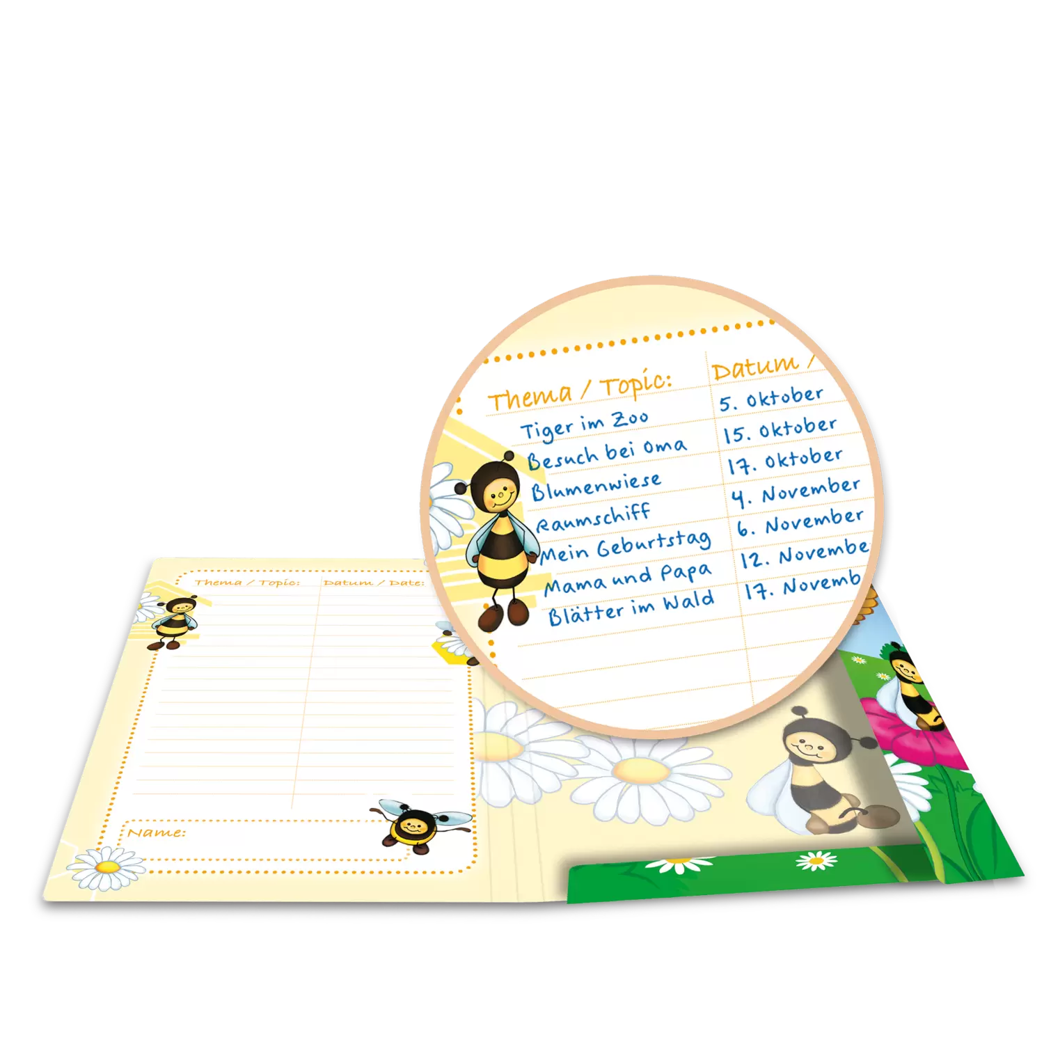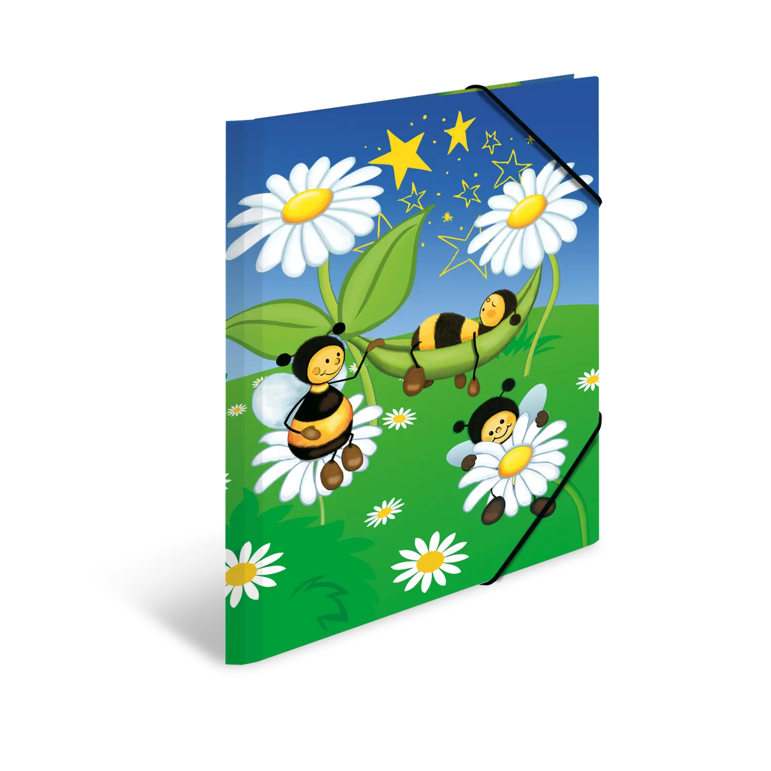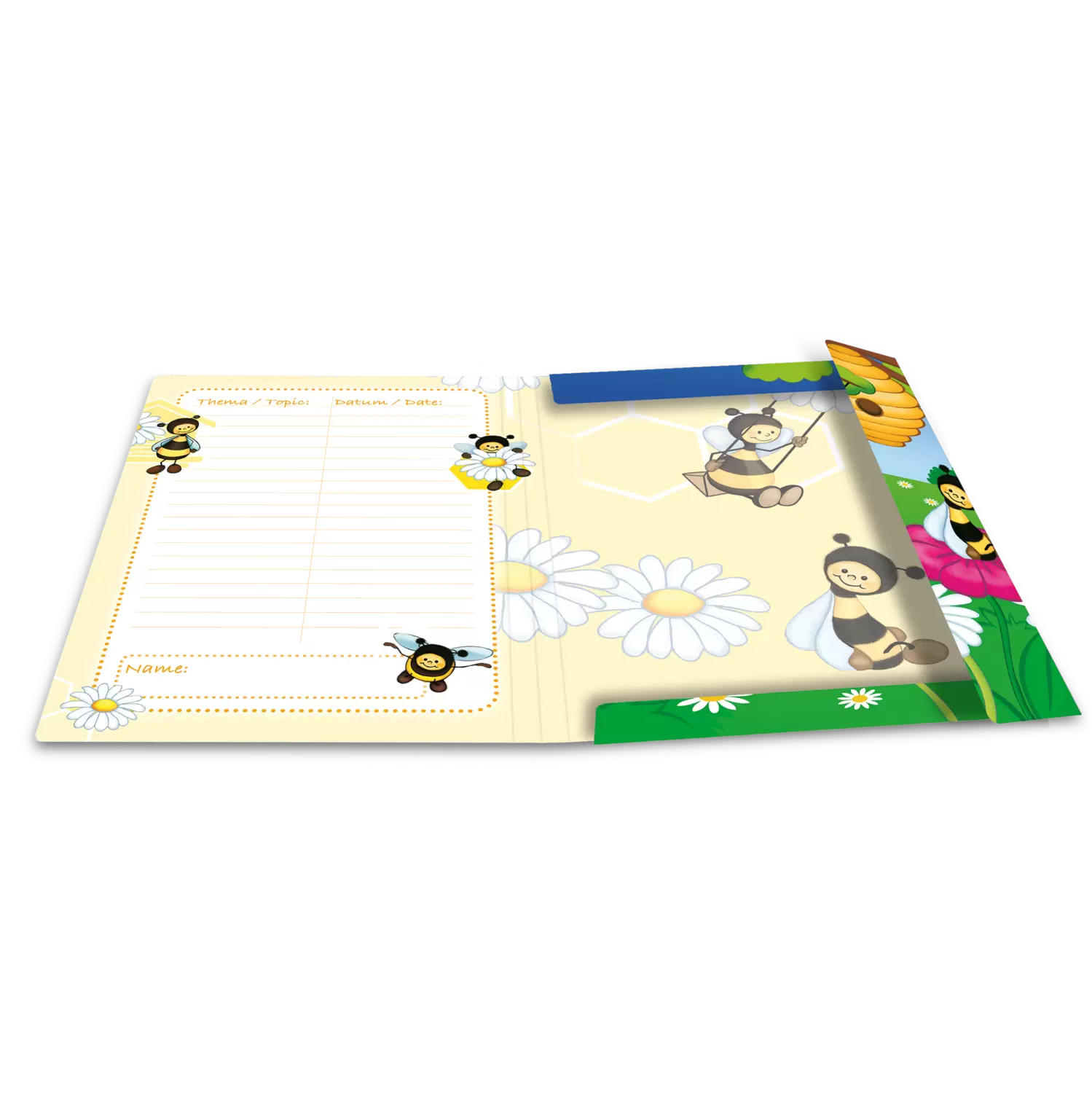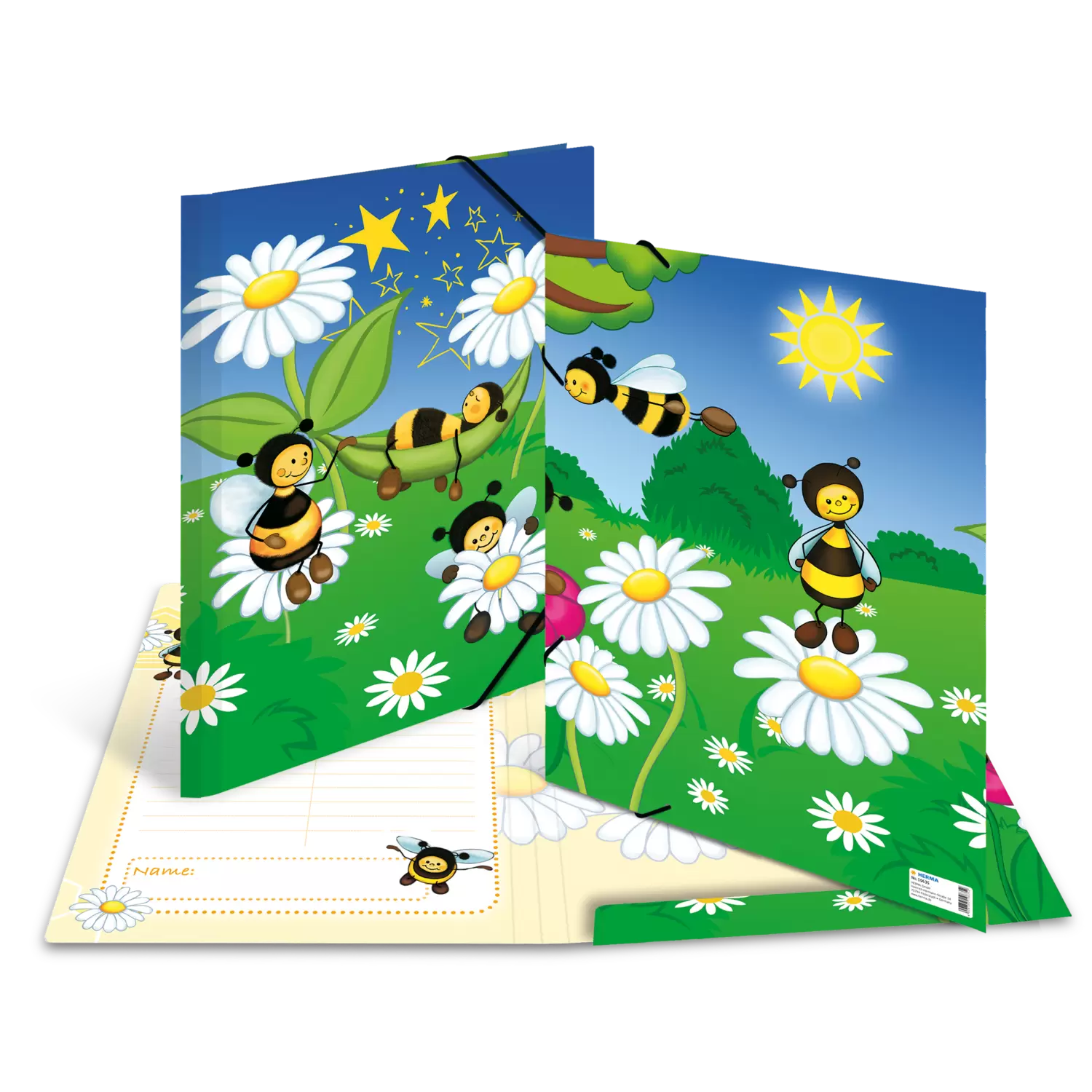 De vlijtige bijen zoemen vrolijk over de weide, langs prachtige bloemen en door sappig groene stengels. Het liefdevol vormgegeven motief maakt de kleintjes en de allerkleinsten blij. De map meet 44 cm x 33,5 cm en is dus groot genoeg voor papieren, tekeningen en documenten tot DIN A3-formaat. Hij is gemaakt van stevig karton en dankzij twee hoogwaardige hoekspanners gemakkelijk te openen en te sluiten. Dankzij de drie binnenflappen wordt de inhoud beschermd en ook kleiner papierwerk kan er niet uit vallen.