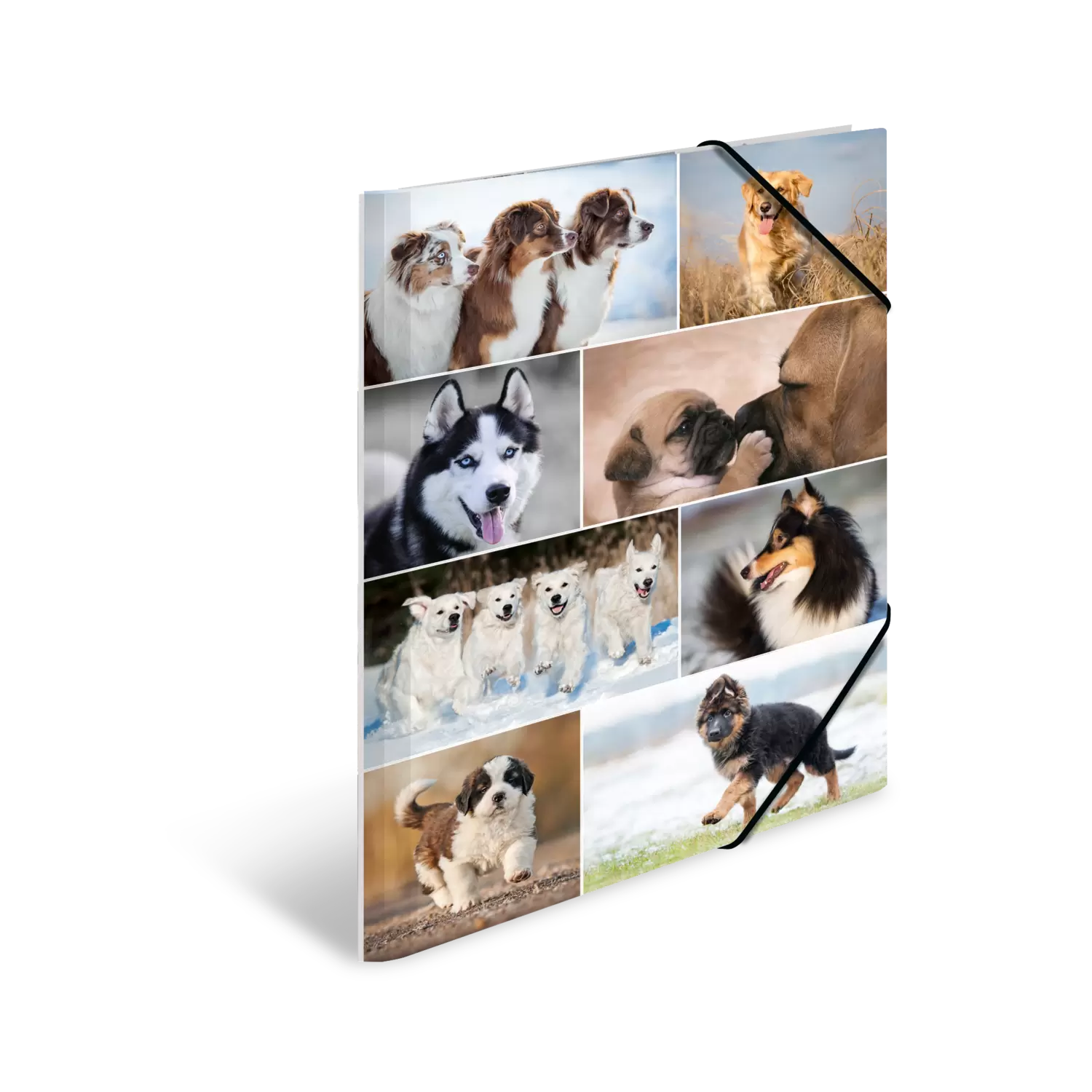 Van stevig karton, met elastieken hoekspanners en 3 binnenflappen