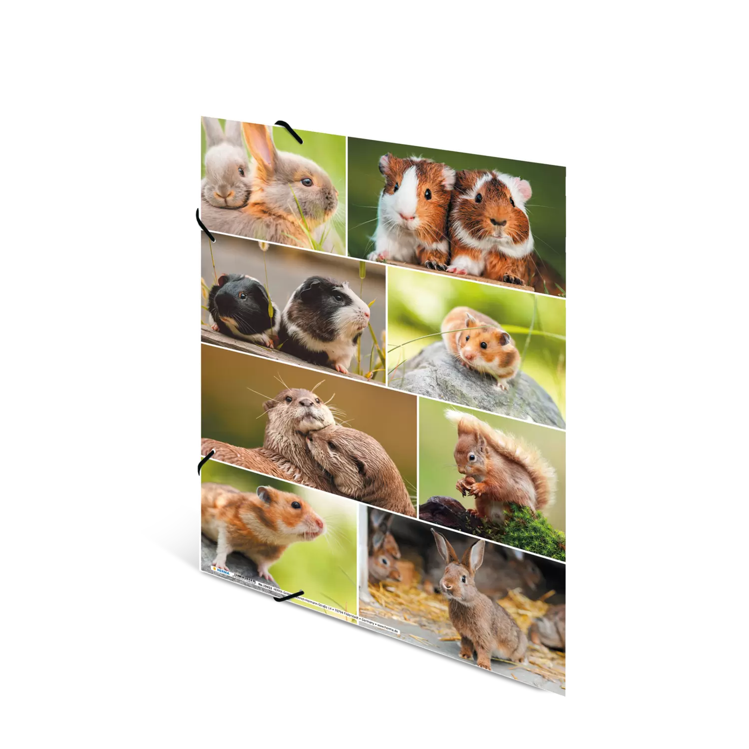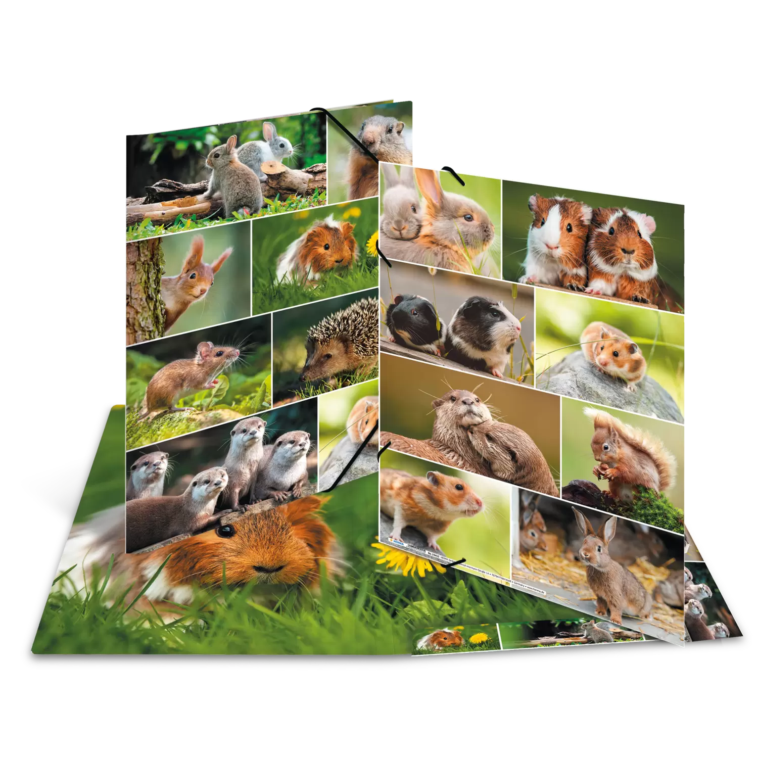 Knaagdierliefhebbers opgelet! Wie graag naar die schattige kleine knaagdieren kijkt of misschien zelfs zelf zo'n klein pluizig vriendje in huis heeft, zal enorm veel plezier beleven aan deze verzamelmap, die van binnen en van buiten bedrukt is met veel verschillende foto's van knaagdieren. Van de partij zijn schattige hamsters, cavia's en konijntjes, grappige otters en eekhoorntjes en nog veel meer! Leuk voor dierenliefhebbers en iedereen die graag naar het bos gaat. De map meet 44 cm x 33,5 cm en is dus groot genoeg voor papieren, tekeningen en documenten tot een formaat van DIN A3. Hij is gemaakt van stevig karton en dankzij twee hoogwaardige hoekspanners gemakkelijk te openen en te sluiten. Dankzij de drie binnenflappen wordt de inhoud beschermd en ook kleiner papierwerk kan er niet uit vallen.