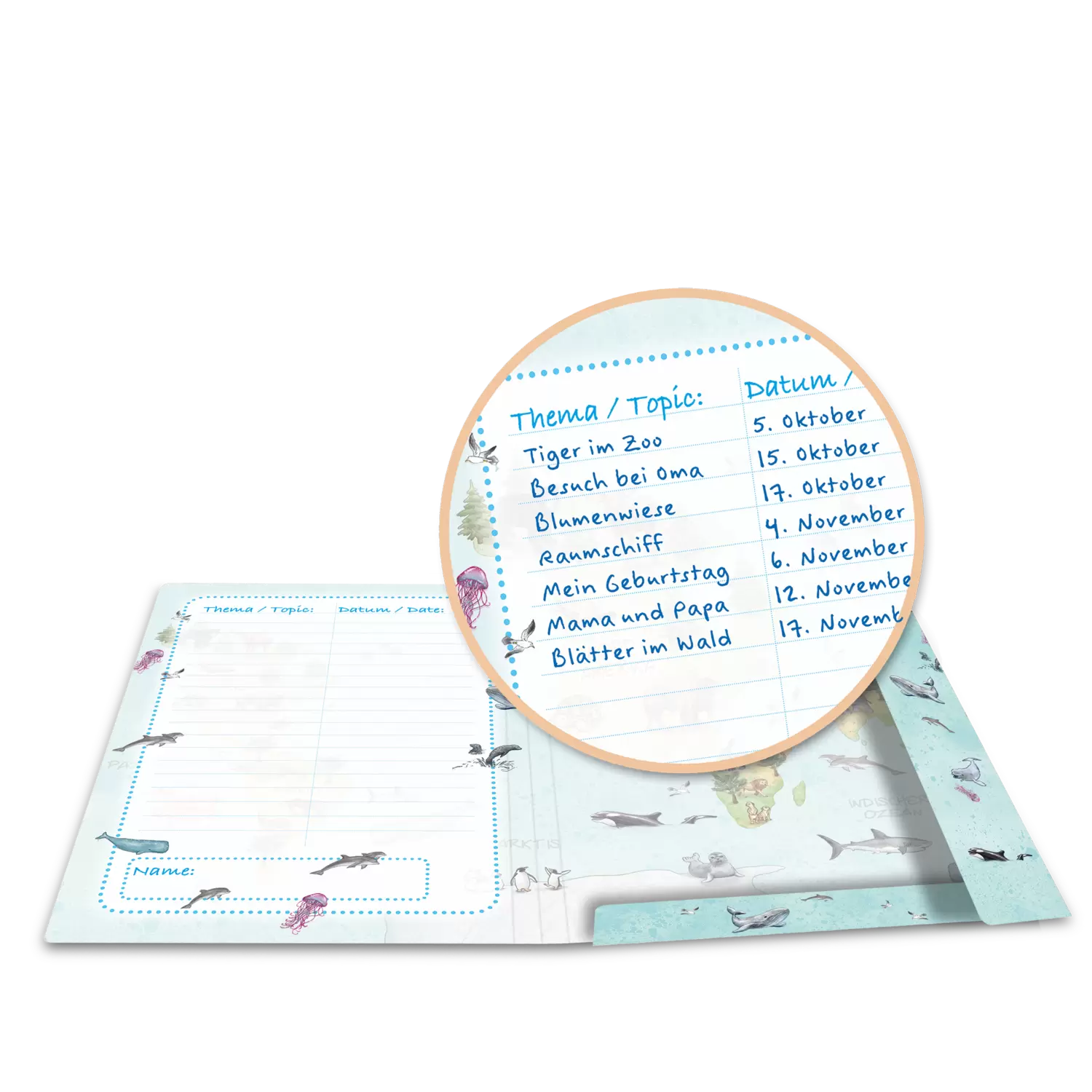 - Geschikt voor formaten tot DIN A3, van stevig karton, met elastieken hoekspanners en 3 binnenflappen met print