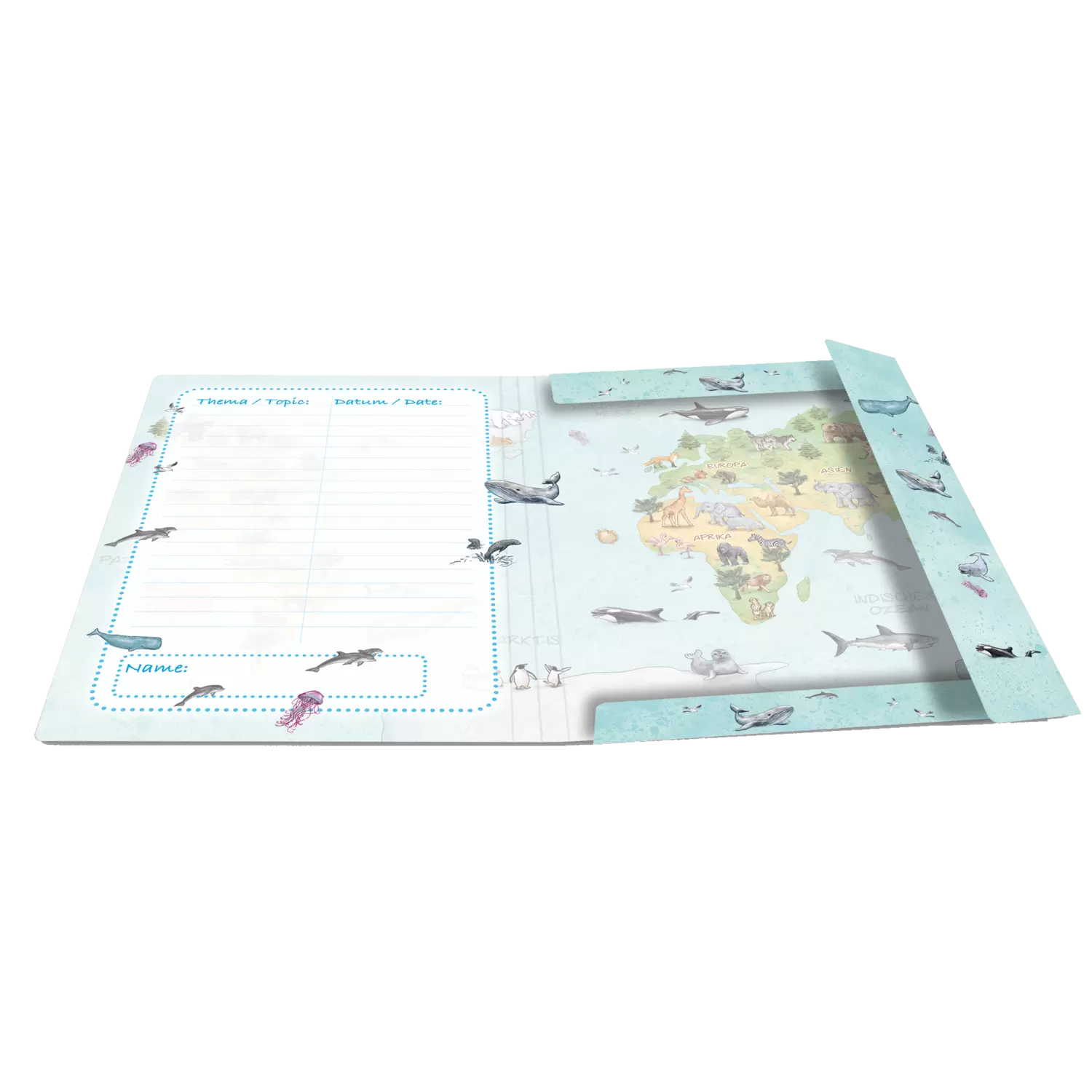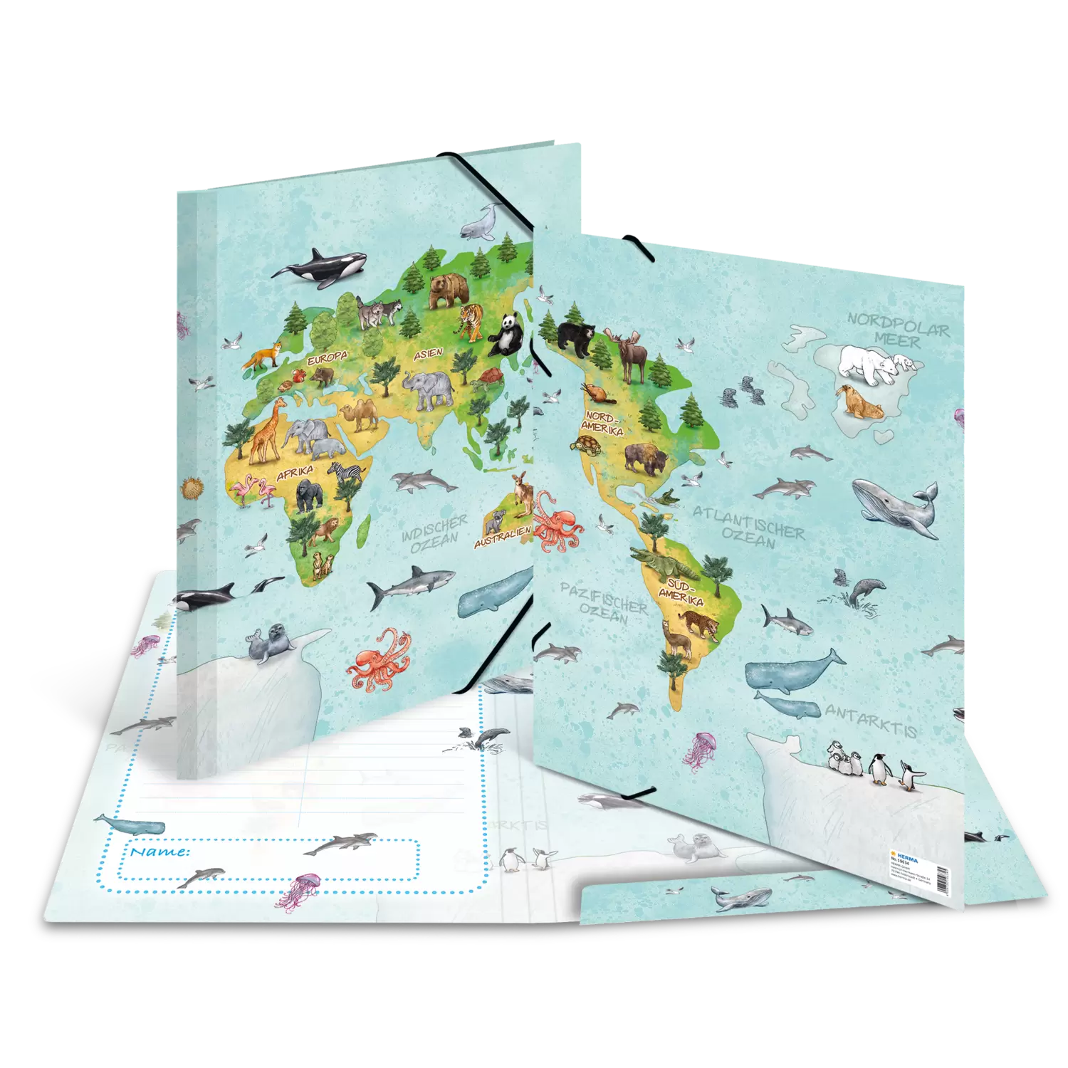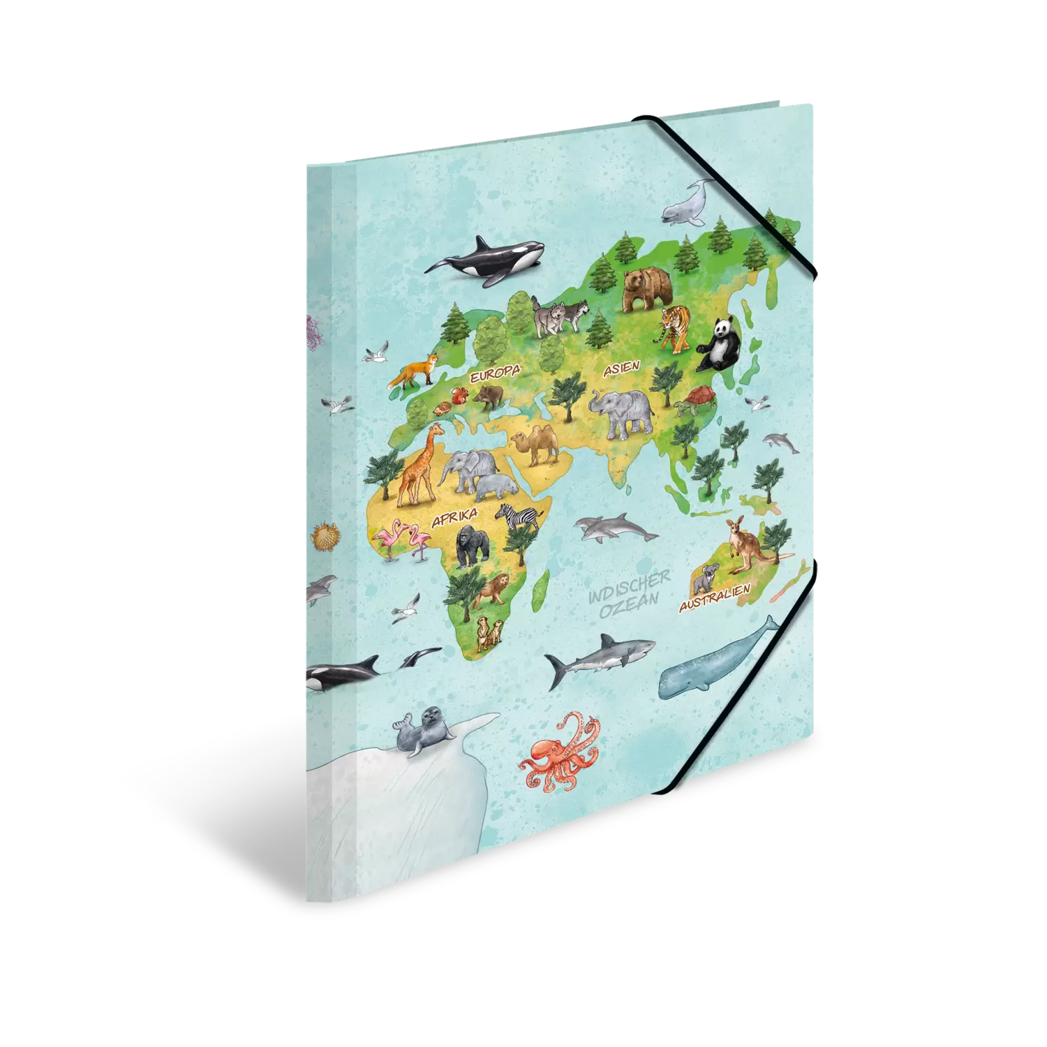 - Verzamelmap met het motief "Wereldkaart", van stevig karton