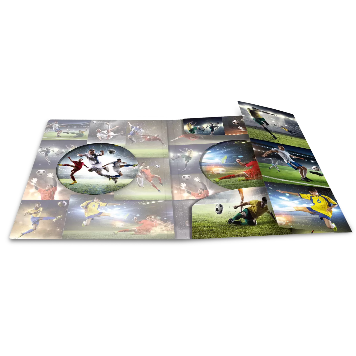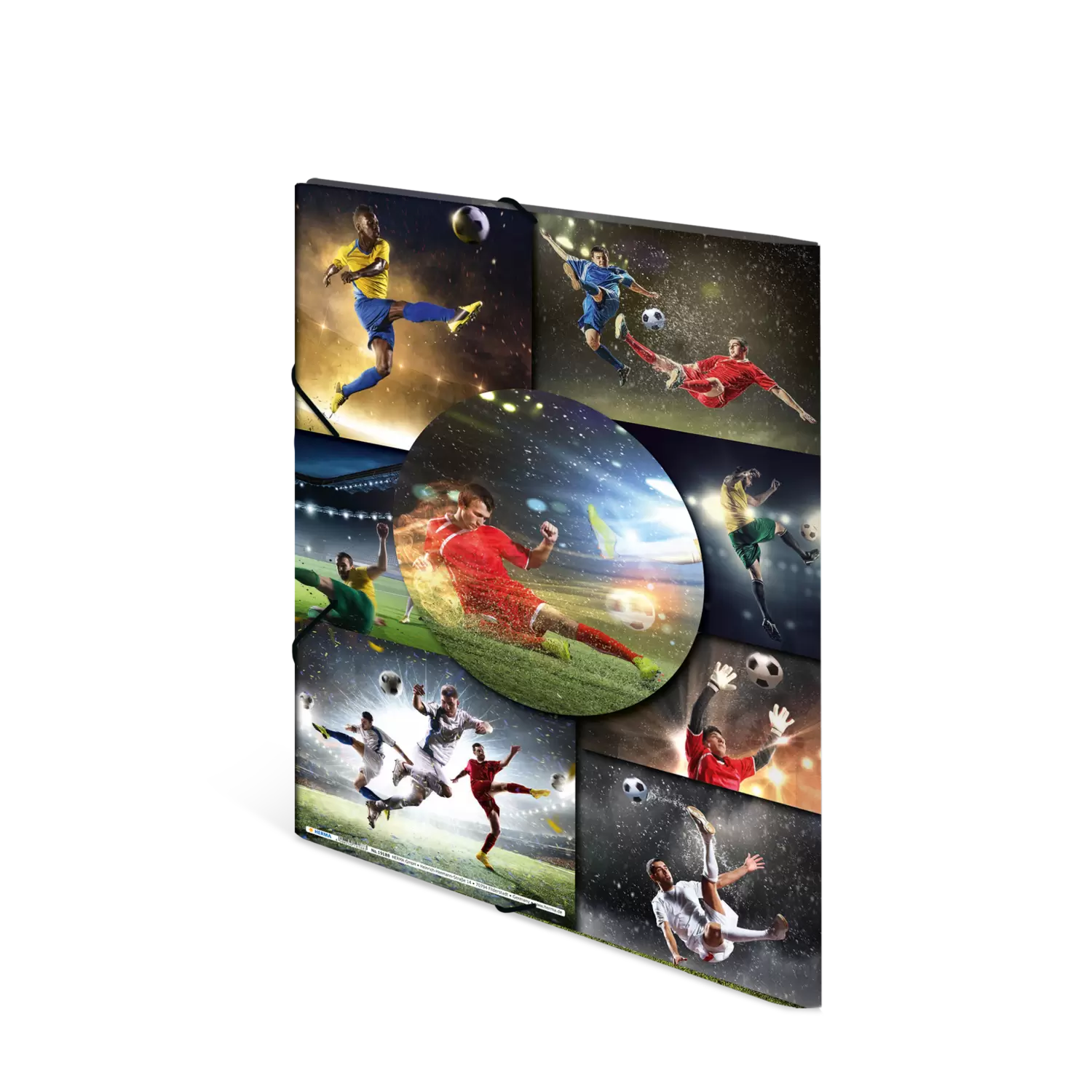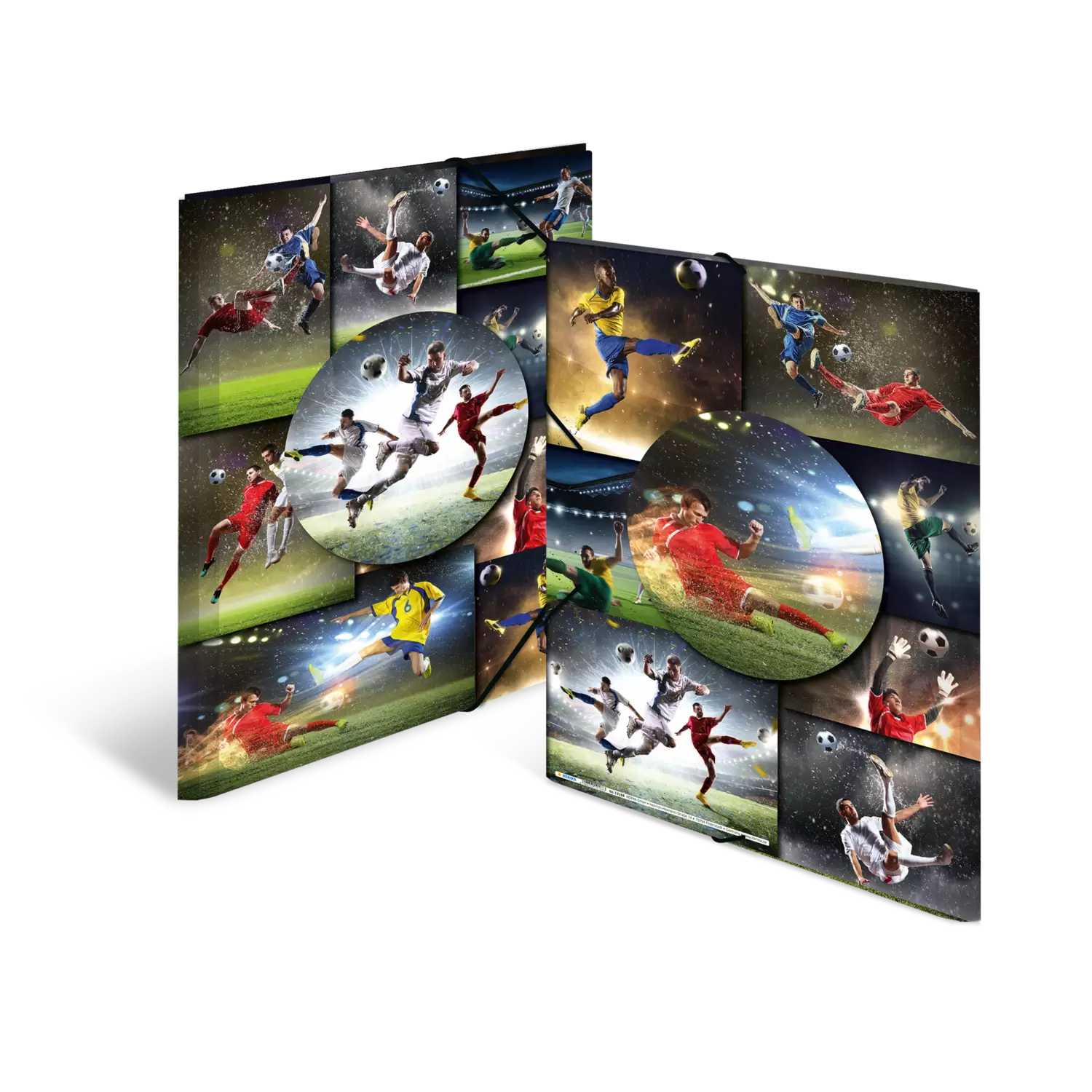 Rondom sportief de verzamelmap met elastieken band en inslagflappen in voetbaldesign. Gemaakt van stabiel polypropyleen in het formaat A3. Ideaal voor het bewaren van losse paperassen