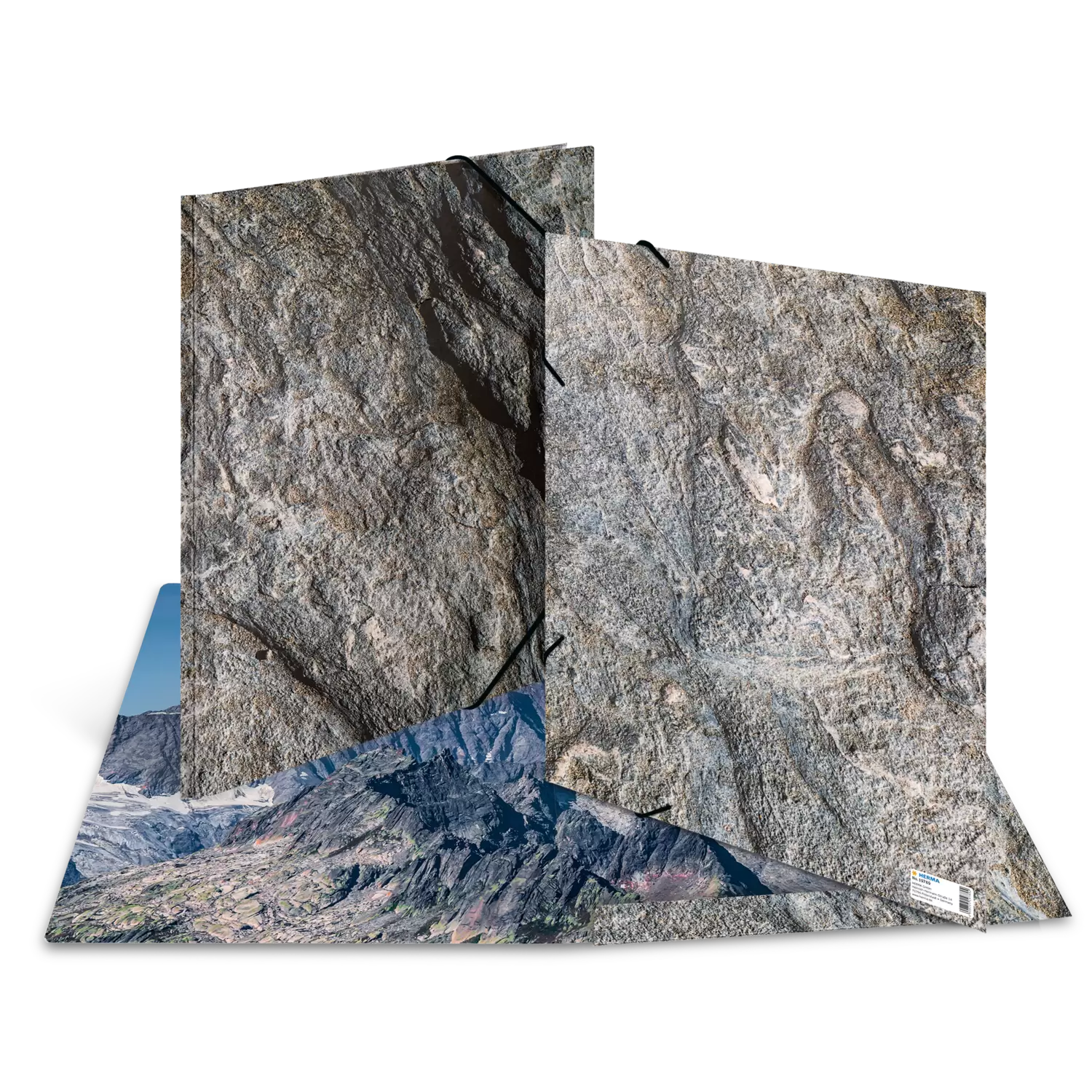 De natuur creëert unieke kunstwerken: gigantische kloven, kilometers hoge bergen, eindeloze zeeën, bomen die tot aan de hemel lijken te reiken – een overweldigend schouwspel van kracht en schoonheid. De HERMA Deluxe-verzamelmappenserie "Nature" toont de rauwe en desondanks delicate kunst van de natuur: ruwe, oeroude structuren, gegroeid en gevormd in eeuwen, ruig maar fragiel, wild en onberekenbaar, vol fijne vormen: een kunstwerk van de eeuwigheid, een vluchtig moment, een tijdvenster op het verleden van het eeuwige ijs. De verzamelmap "Stone" toont de ruwe textuur van rots en steen, een spel van harde structuren en zachte verwassen vormen, ontstaan door water en wind. Hard en zacht tegelijk, onverbiddelijk en toch overwinnelijk door de almaar knagende tand des tijds. Een highlight voor de studeerkamer, voor op het bureau of in de kast. Het extra pluspunt: de hoogwaardige afwerking, die van de stijlvolle verzamelmap een absoluut high-end product maakt. Een eerbetoon aan de natuur – de grootste kunstenares van allemaal.