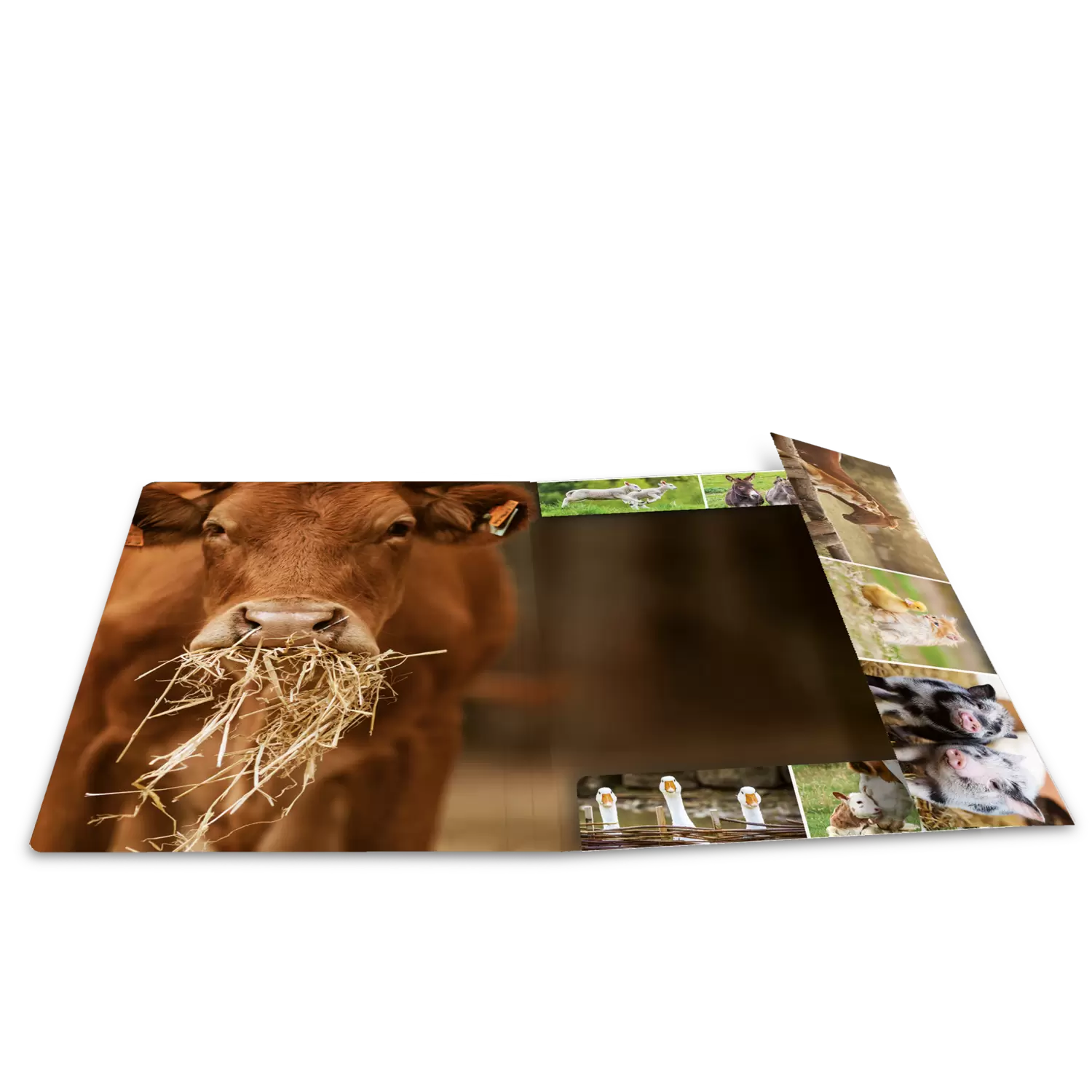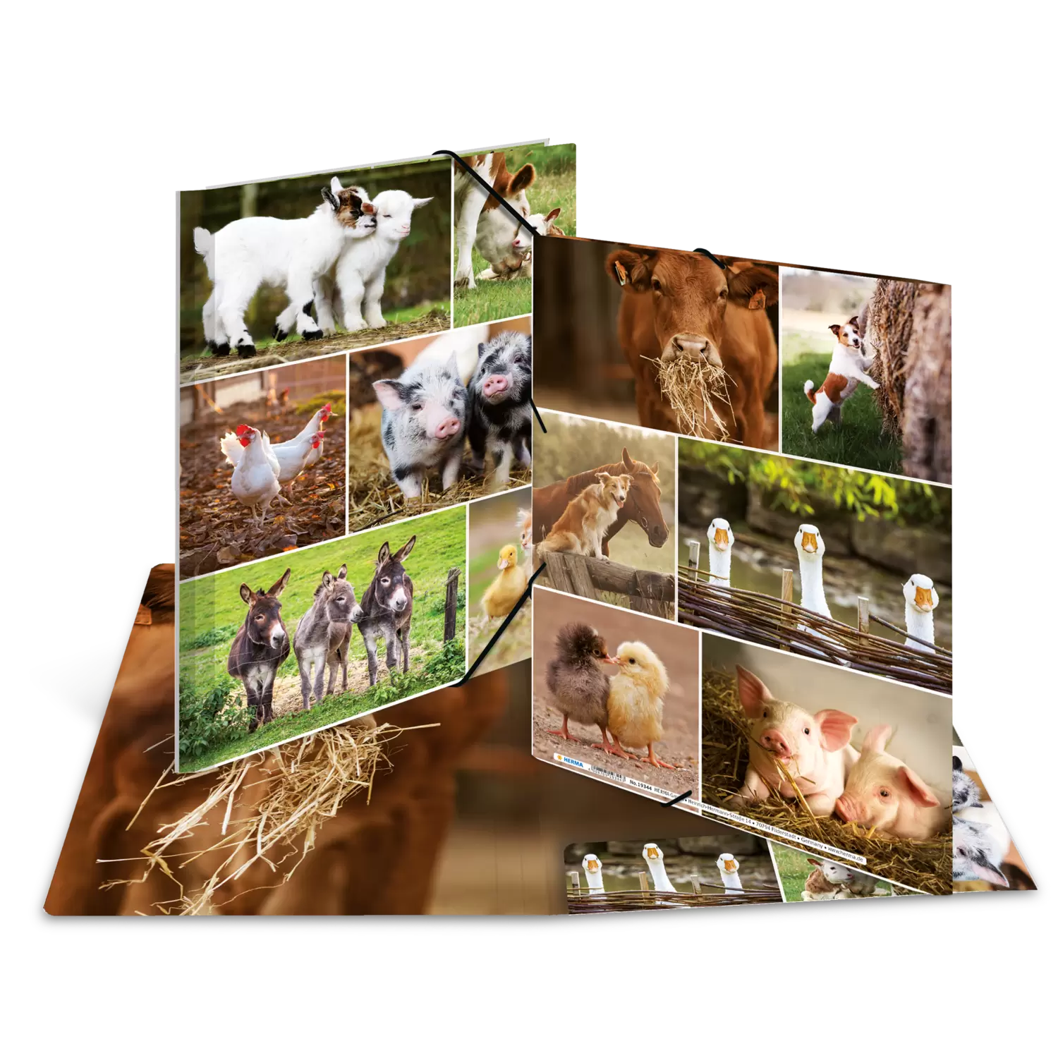 Boederijliefhebbers opgelet! Wie van de boerderij en van boerderijdieren houdt en zijn tijd graag daar doorbrengt, zal veel plezier beleven aan deze verzamelmap, die aan de binnen- en buitenkant bedrukt is met veel verschillende boerderijfoto's. Ideaal voor iedereen die zijn tijd het liefst doorbrengt in de stal of in de wei, te midden van koeien, geiten en kippen. De map meet 32 cm x 24 cm en is dus groot genoeg voor papieren, tekeningen en documenten tot DIN A4-formaat. Hij is gemaakt van stevig karton en dankzij twee hoogwaardige hoekspanners gemakkelijk te openen en te sluiten. Dankzij de drie binnenflappen wordt de inhoud beschermd en ook kleiner papierwerk kan er niet uit vallen.