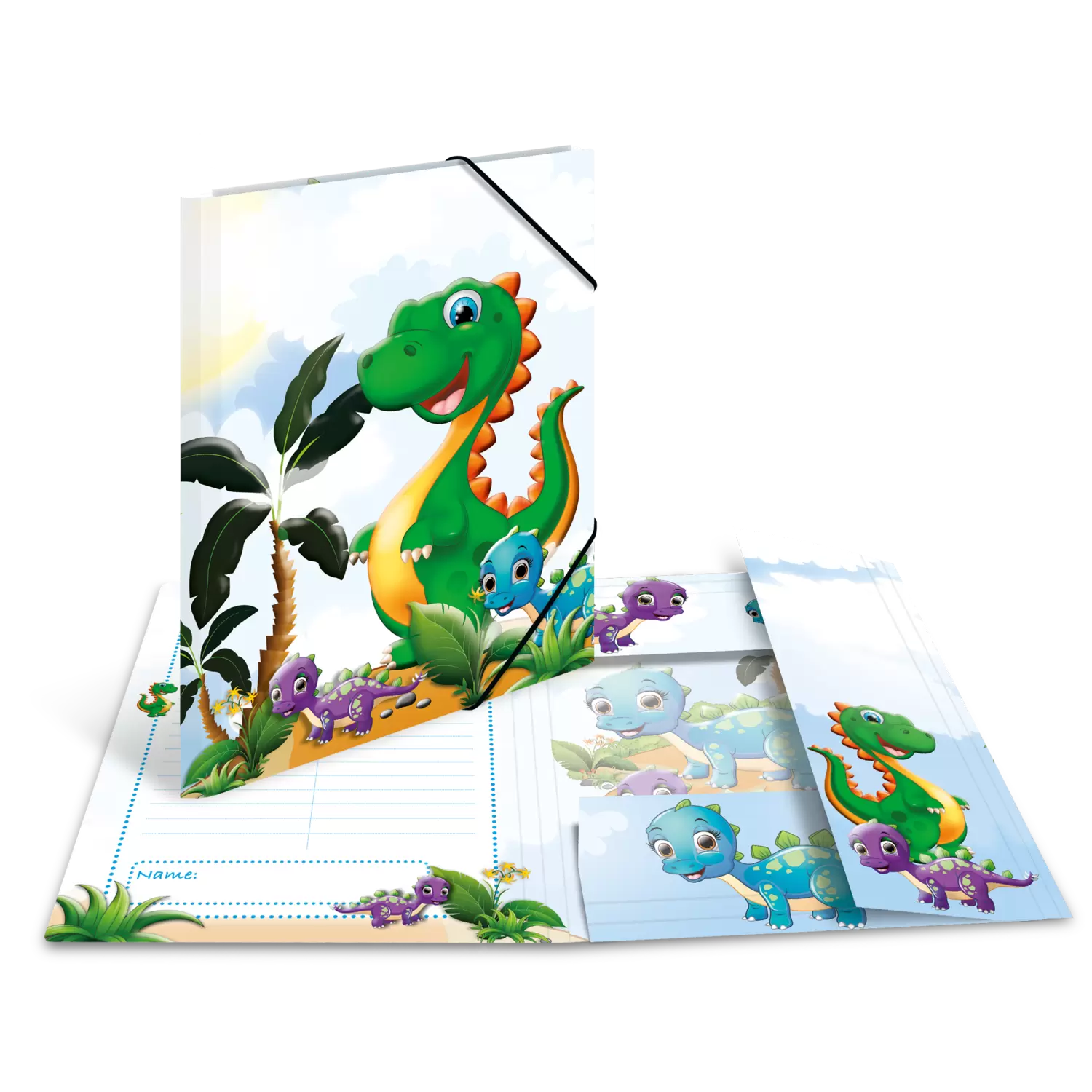 In de verzamelmap "dino's" voor echte avonturiers kunnen kinderen prachtig mooi kleine kunstwerkjes opbergen. Vooral voor naar de crèche en in groep 1-2 is de map een geweldig accessoire. Hij is gemaakt van stevig karton, glad en daarom gemakkelijk afwasbaar. Op de voorkant staan bont gekleurde en vrolijke dinosaurussen die alle kinderen aanspreken en stimuleren tot een oneindige fantasie. De map wordt met een elastieken band goed gesloten en kan zo ook supergemakkelijk worden geopend. Deze opbergmap van HERMA is bij jongens en meisjes in de kleuterleeftijd bijzonder geliefd en is op grond van de fraaie motieven een eyecatcher in elk knutseluurtje op de crèche en op school. Door het DIN A4 formaat kan hij heel handzaam in alle schooltassen en rugzakken worden opgeborgen en is daardoor gemakkelijk mee te nemen. De drie flappen aan de binnenkant zorgen ervoor dat losse blaadjes, briefjes en tekeningen kunnen worden meegenomen, zonder eruit te vallen. De map is perfect om een goed overzicht te houden tijdens de kleuterperiode voor naar de crèche en in groep 1-2. Verder zorgt het materiaal voor een goede bescherming tegen vies worden buiten of tegen morsvlekken van meegenomen eten en drinken. Als het grappige dino-design van de opbergmap u bevalt, dan kunt u dezelfde map ook in DIN A3 verkrijgen, zodat uw kind ook de wat omvangrijkere kunstwerkjes van de crèche en van school prima kan opbergen.