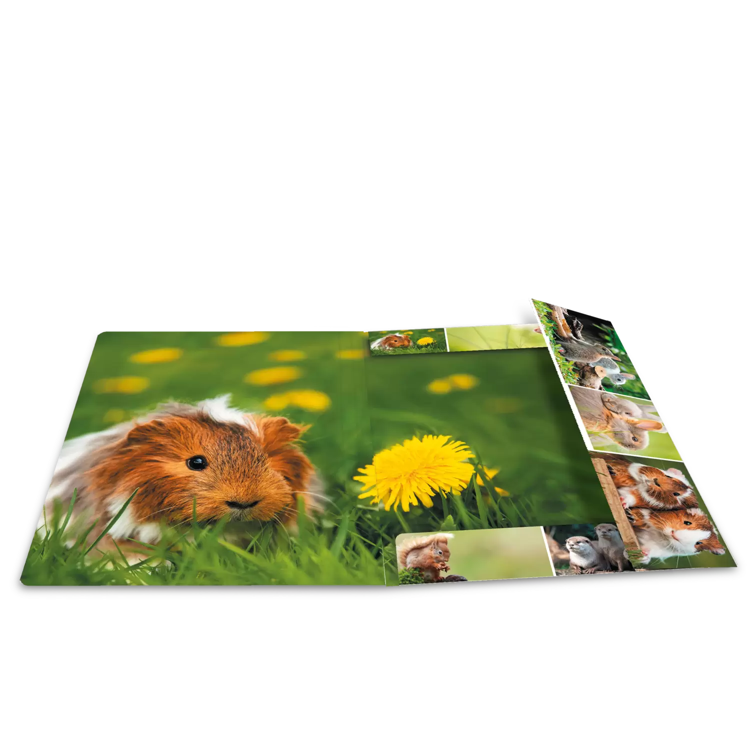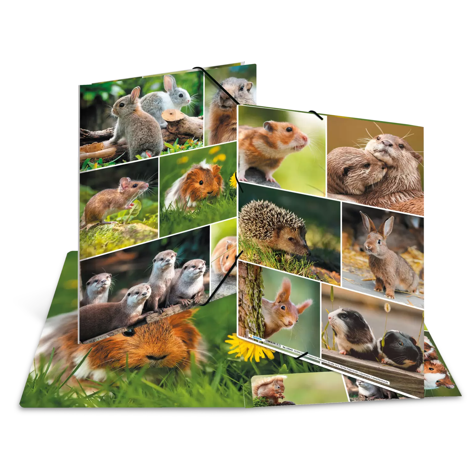 Knaagdierliefhebbers opgelet! Wie graag naar die schattige kleine knaagdieren kijkt of misschien zelfs zelf zo'n klein pluizig vriendje in huis heeft, zal enorm veel plezier beleven aan deze verzamelmap, die van binnen en van buiten bedrukt is met veel verschillende foto's van knaagdieren. Van de partij zijn schattige hamsters, cavia's en konijntjes, grappige otters en eekhoorntjes en nog veel meer! Leuk voor dierenliefhebbers en iedereen die graag naar het bos gaat. De map meet 32 cm x 24 cm en is dus groot genoeg voor papieren, tekeningen en documenten tot DIN A4-formaat. Hij is gemaakt van stevig karton en dankzij twee hoogwaardige hoekspanners gemakkelijk te openen en te sluiten. Dankzij de drie binnenflappen wordt de inhoud beschermd en ook kleiner papierwerk kan er niet uit vallen.