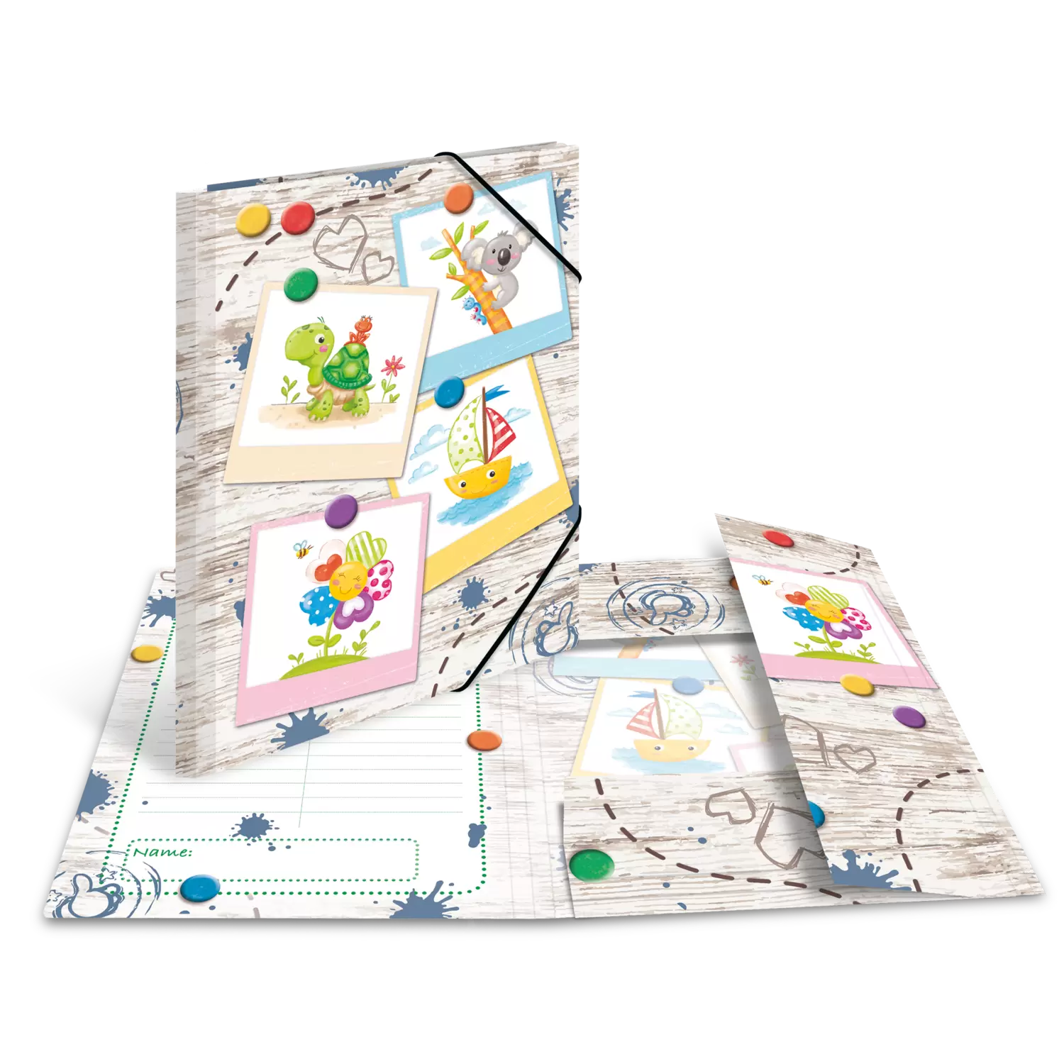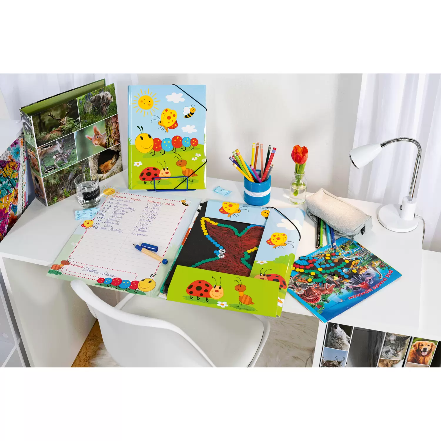 Opruimen leuk? Ja, dat kan - en wel met de hoekspannermap van HERMA in handzaam DIN A4 formaat. Dankzij het formaat is de map eenvoudig op te bergen en kan gemakkelijk van de crèche mee naar huis worden genomen, omdat hij in nagenoeg elke schooltas of rugzak past. Als uw kind van spelen in de zandbak en kastelen bouwen houdt, dan vast en zeker ook van deze opbergmap om losse blaadjes, kunstwerkjes en tekeningen op te bergen om te voorkomen dat ze in de kinderkamer rondslingeren. Hij is voorzien van kwalitatief hoogwaardige hoekspanners die de blaadjes en kunstwerkjes van uw kids zo goed bij elkaar houden dat ze er niet uit kunnen vallen en kwijt kunnen raken. Ook is de inhoud optimaal beschermd tegen vies worden buiten, omdat de tekenmap van HERMA beschikt over drie geïntegreerde binnenflappen met print. Binnenin de map bevindt zich een register, waarin u onderwerpen en tijdstippen kunt bijhouden. Onderaan de rand van de map bevindt zich een naamveld om de map te kunnen personaliseren. Bovendien is hij uiterst slijtvast en afwasbaar. Met deze A4 verzamelmap kunnen losse blaadjes en kunstwerkjes tot en met het papierformaat DIN A4 bij elkaar worden gehouden. Als u een grotere map nodig hebt en de uitvoering u bevalt, vindt u dezelfde in DIN A3 eveneens in ons assortiment.