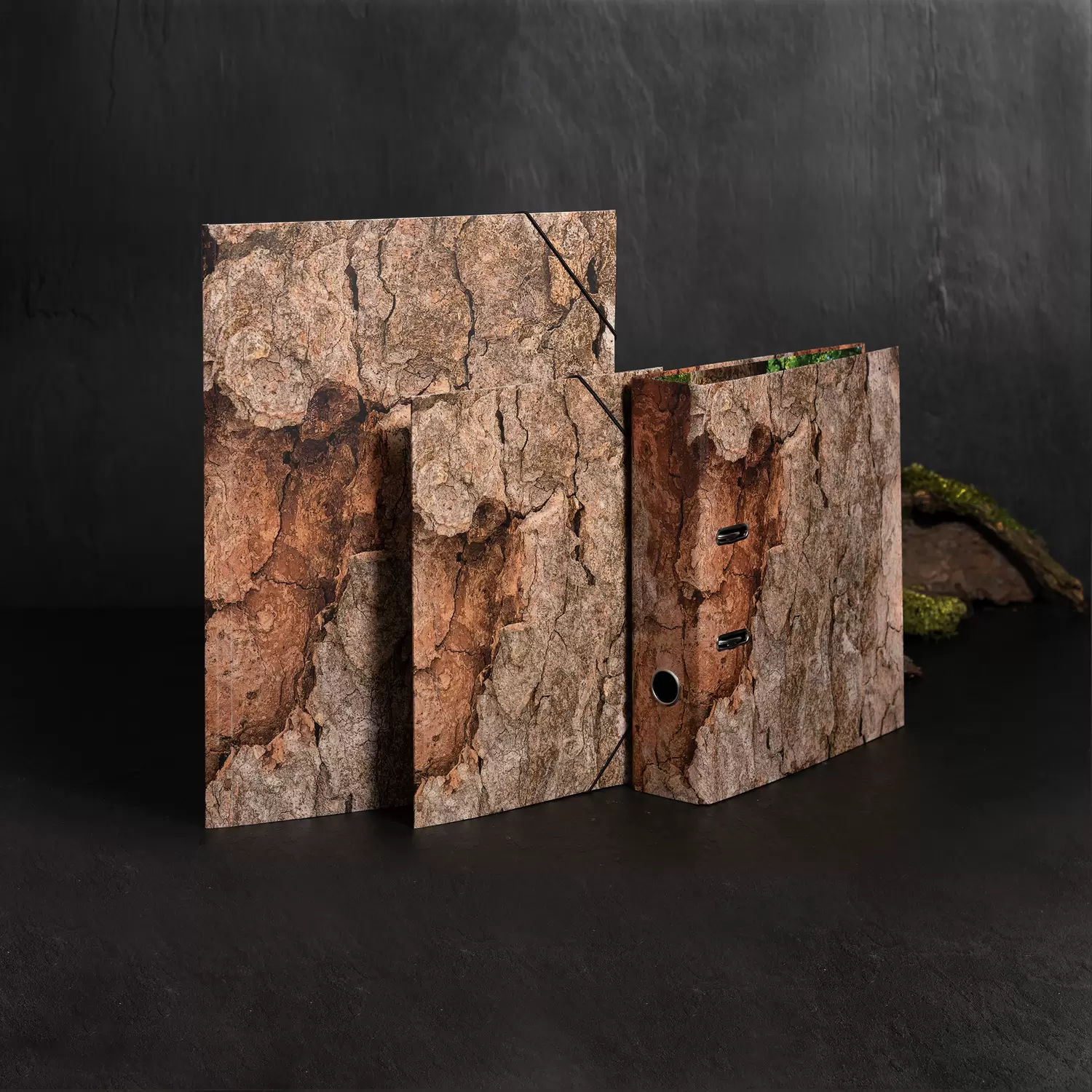 De natuur creëert unieke kunstwerken: gigantische kloven, kilometers hoge bergen, eindeloze zeeën, bomen die tot aan de hemel lijken te reiken – een overweldigend schouwspel van kracht en schoonheid. De HERMA Deluxe-verzamelmappenserie "Nature" toont de rauwe en desondanks delicate kunst van de natuur: ruwe, oeroude structuren, gegroeid en gevormd in eeuwen, ruig maar fragiel, wild en onberekenbaar, vol fijne vormen: een kunstwerk van de eeuwigheid, een vluchtig moment, een tijdvenster op het verleden van het eeuwige ijs. De verzamelmap "Wood" toont de ruig-harmonische schorsstructuur van een oeroude boom – gegroefd en gehavend door weer en wind, standvastig en weerbarstig. De organische vormen lijken in elkaar over te vloeien, stuk voor stuk grijpt in elkaar, hard en zacht tegelijk. Een symbool van leven en bestendigheid. Een highlight voor de studeerkamer, voor op het bureau of in de kast. Het extra pluspunt: de hoogwaardige afwerking, die van de stijlvolle verzamelmap een absoluut high-end product maakt. Een eerbetoon aan de natuur – de grootste kunstenares van allemaal.