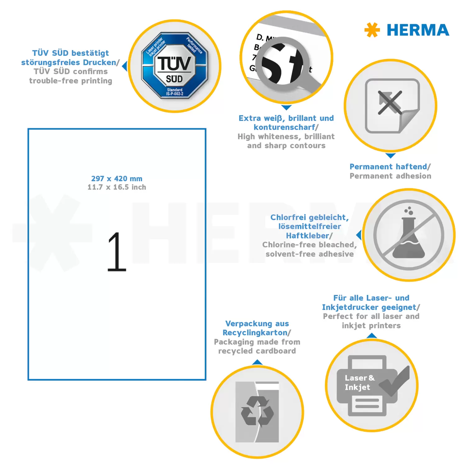 - Schitterend afdrukresultaat en scherpe contouren dankzij een extreem hoge witheidsgraad