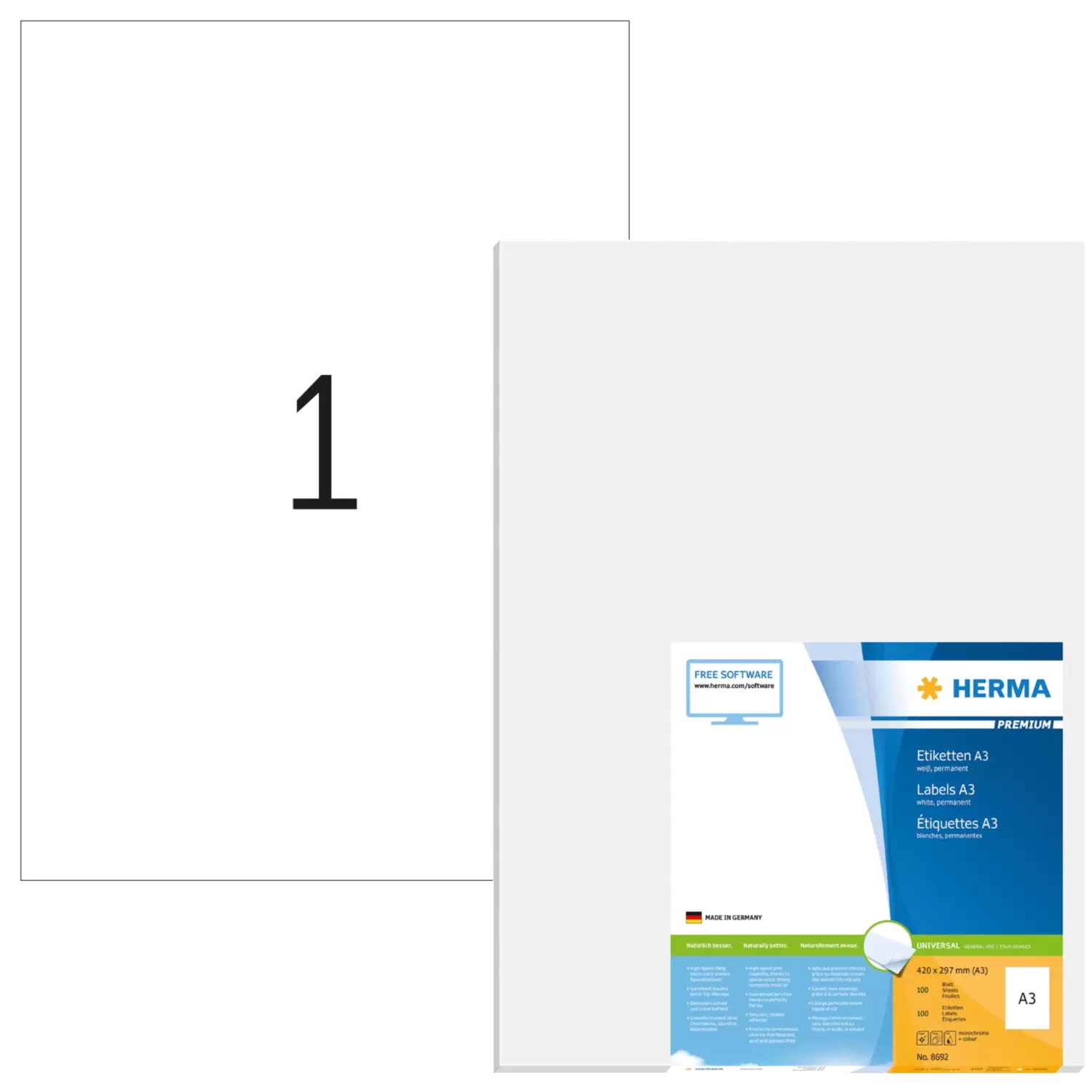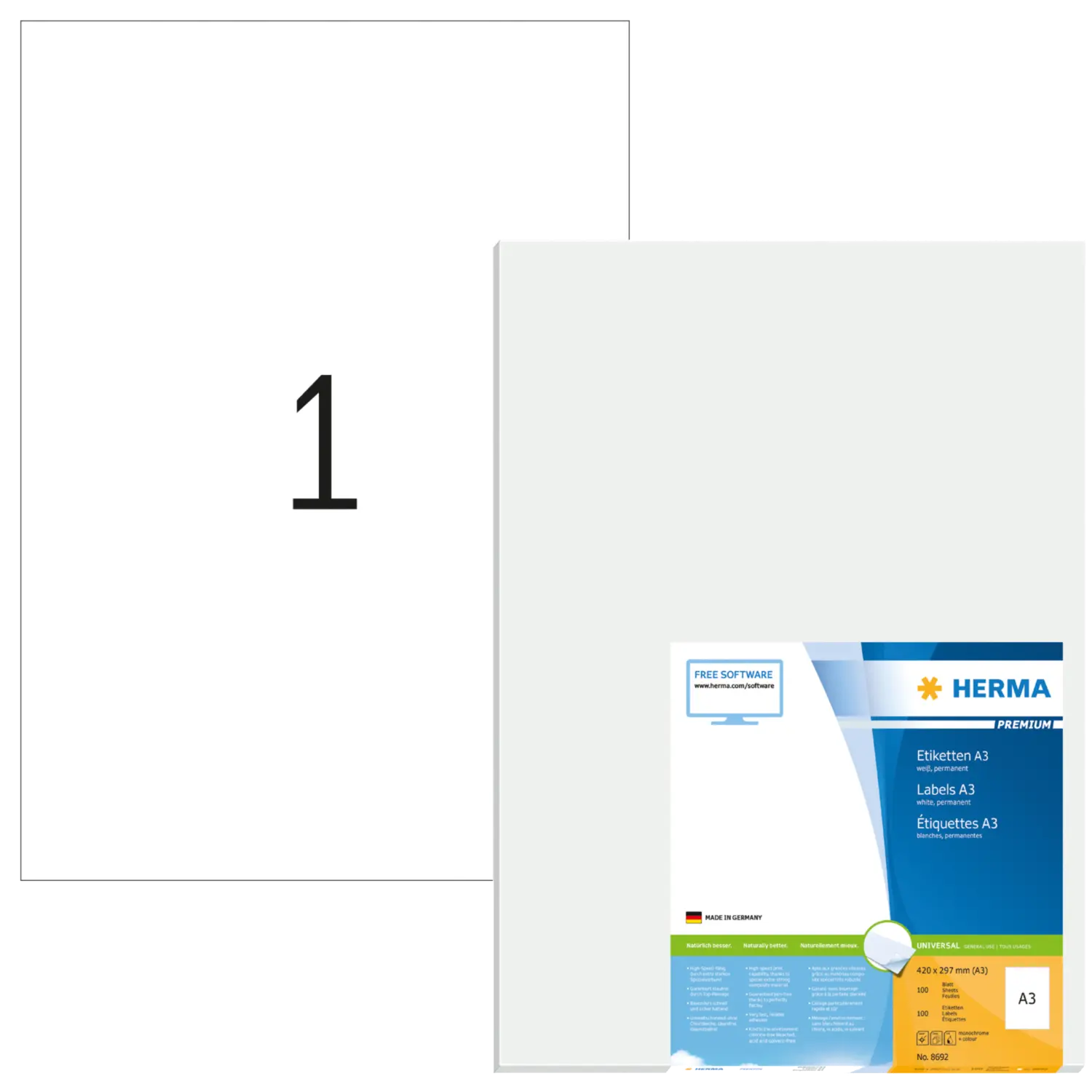 PREMIUM etiketten A3, 297 x 420 mm, wit, permanent hechtend