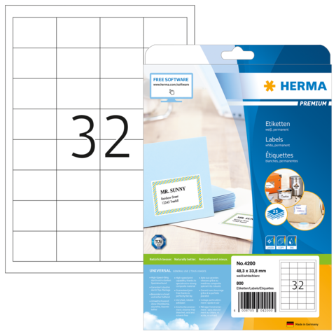 PREMIUM etiketten, A4, 48,3 x 33,8 mm, wit, permanent hechtend