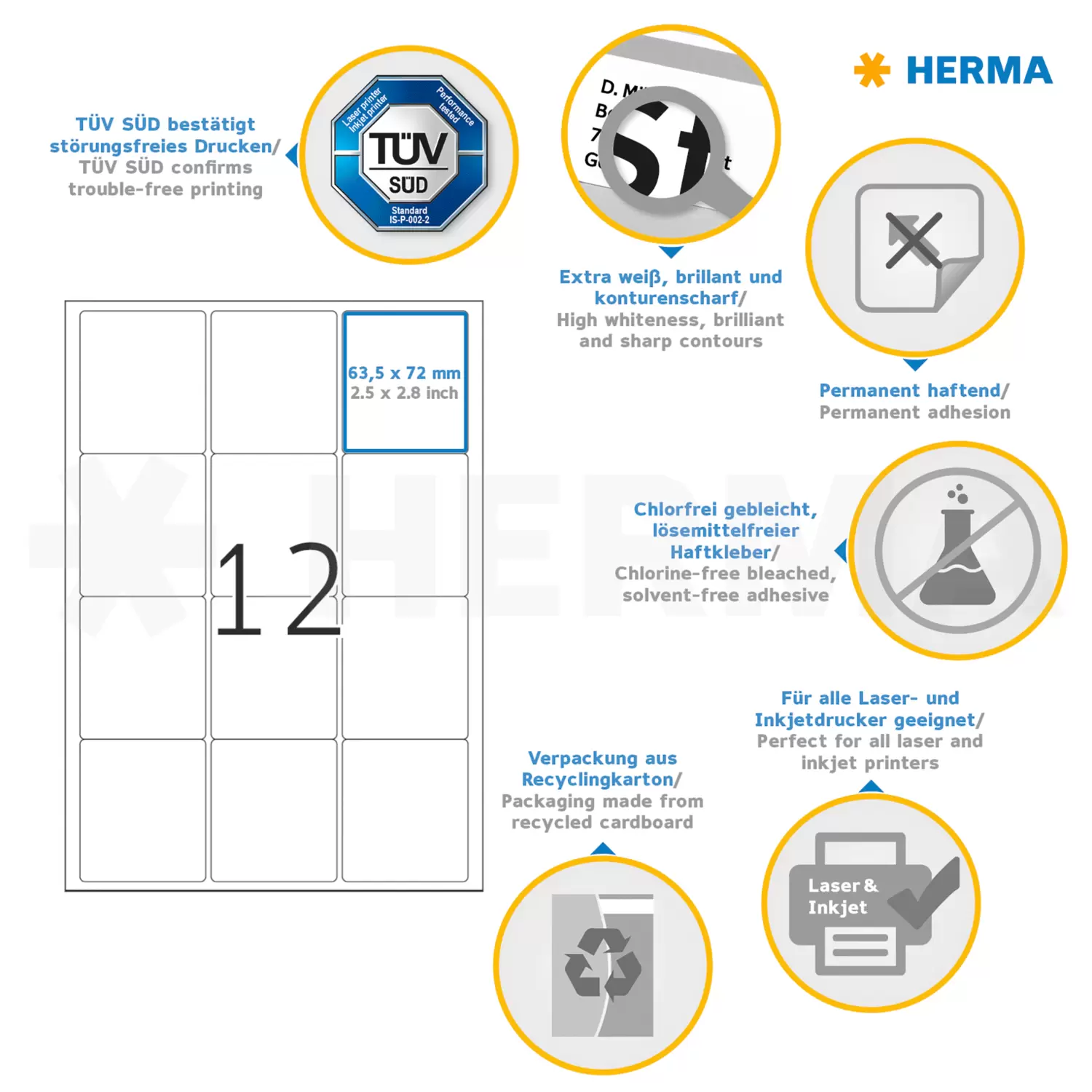 PREMIUM adresetiketten, A4, 63,5 x 72 mm, wit, permanent hechtend