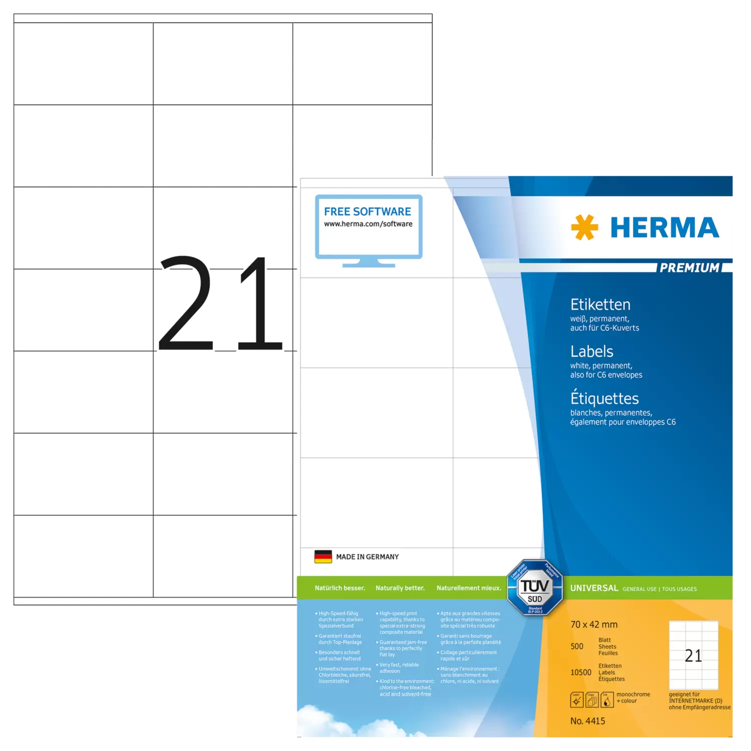 PREMIUM etiketten, A4, 70 x 42 mm, wit, permanent hechtend