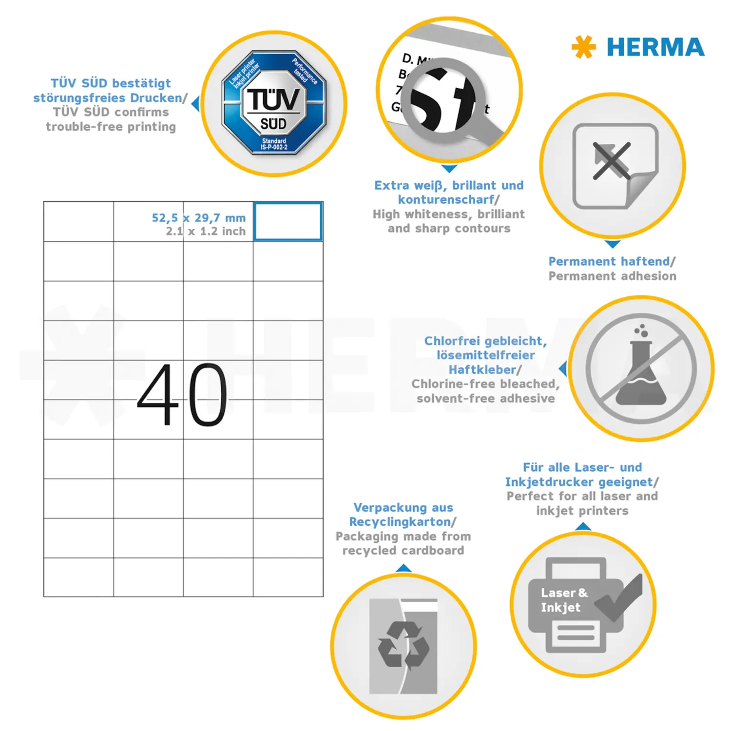 PREMIUM etiketten, A4, 52,5 x 29,7 mm, wit, permanent hechtend