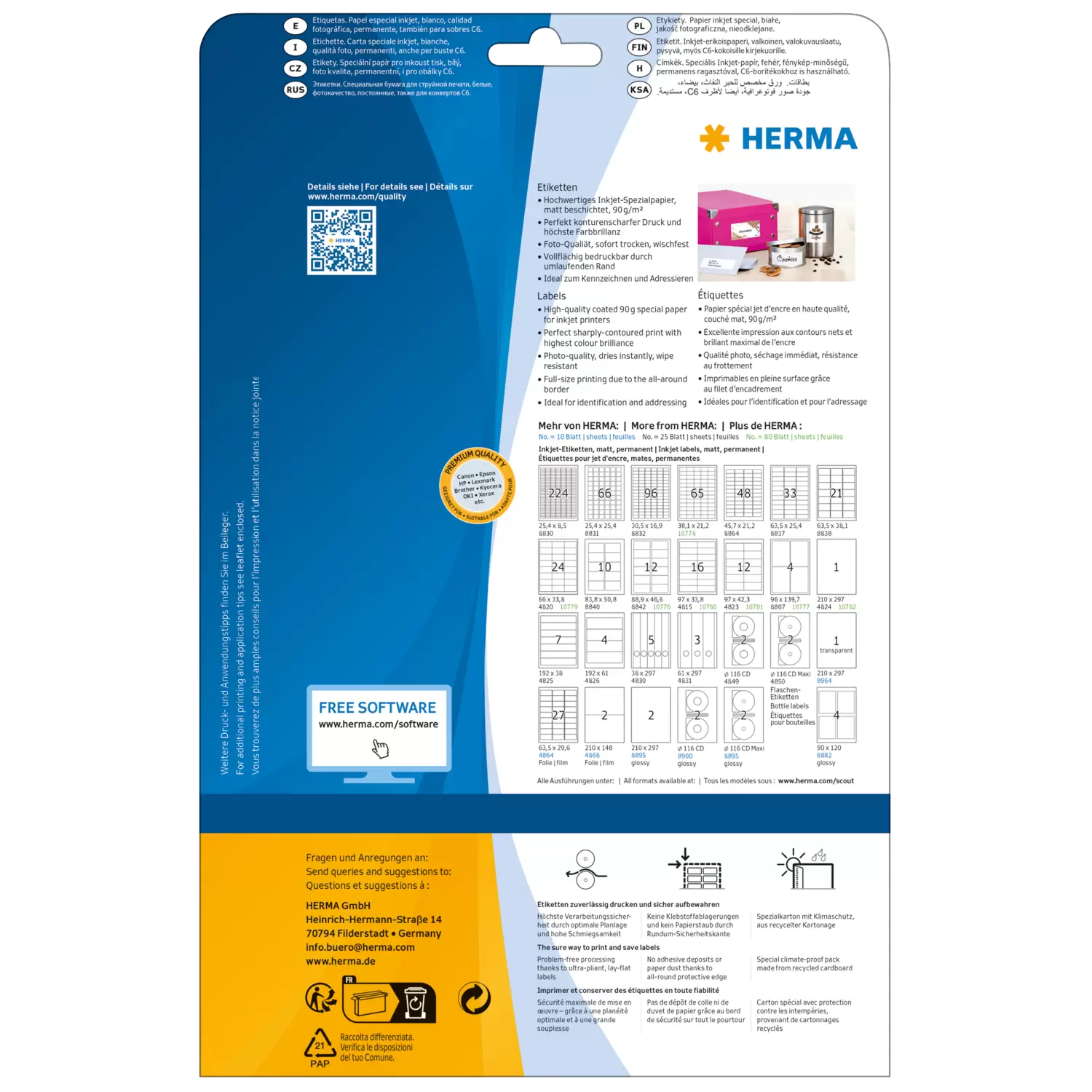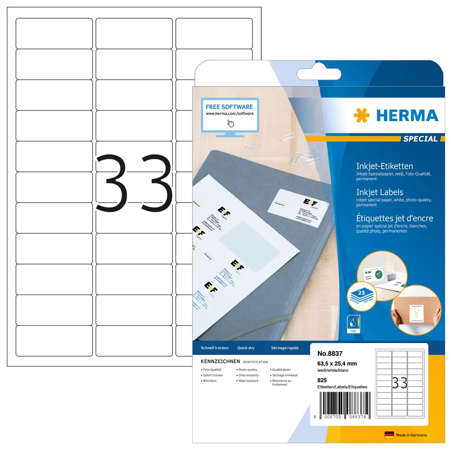 - Contourscherp afdrukken, ideaal voor kleine lettertypes en barcodes, onmiddellijk droog en veegvast