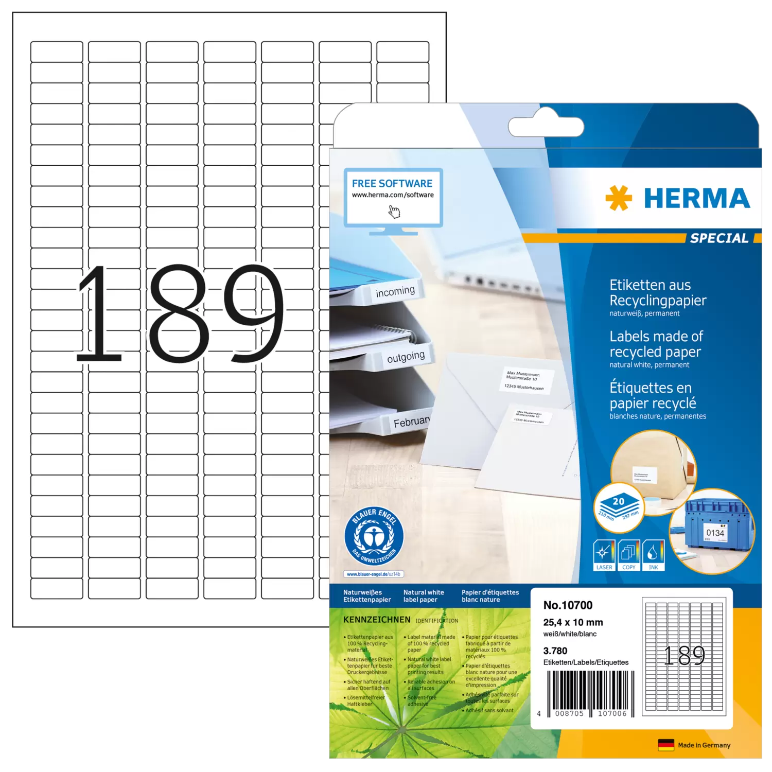 Etiketten van gerecycled papier, A4, 25,4 x 10 mm, wit, permanent hechtend