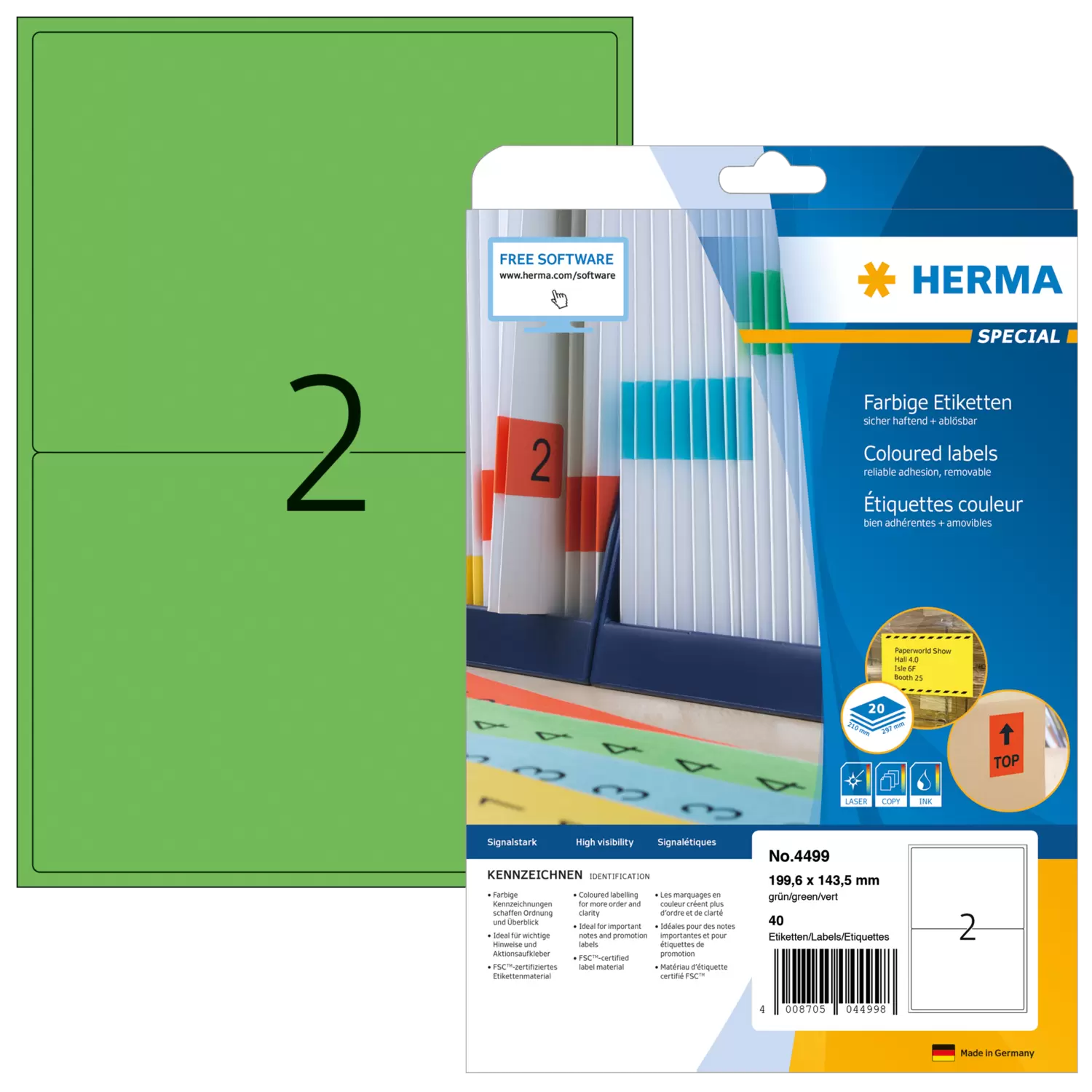 Gekleurde etiketten, A4, 199,6 x 143,5 mm, groen, verwijderbaar