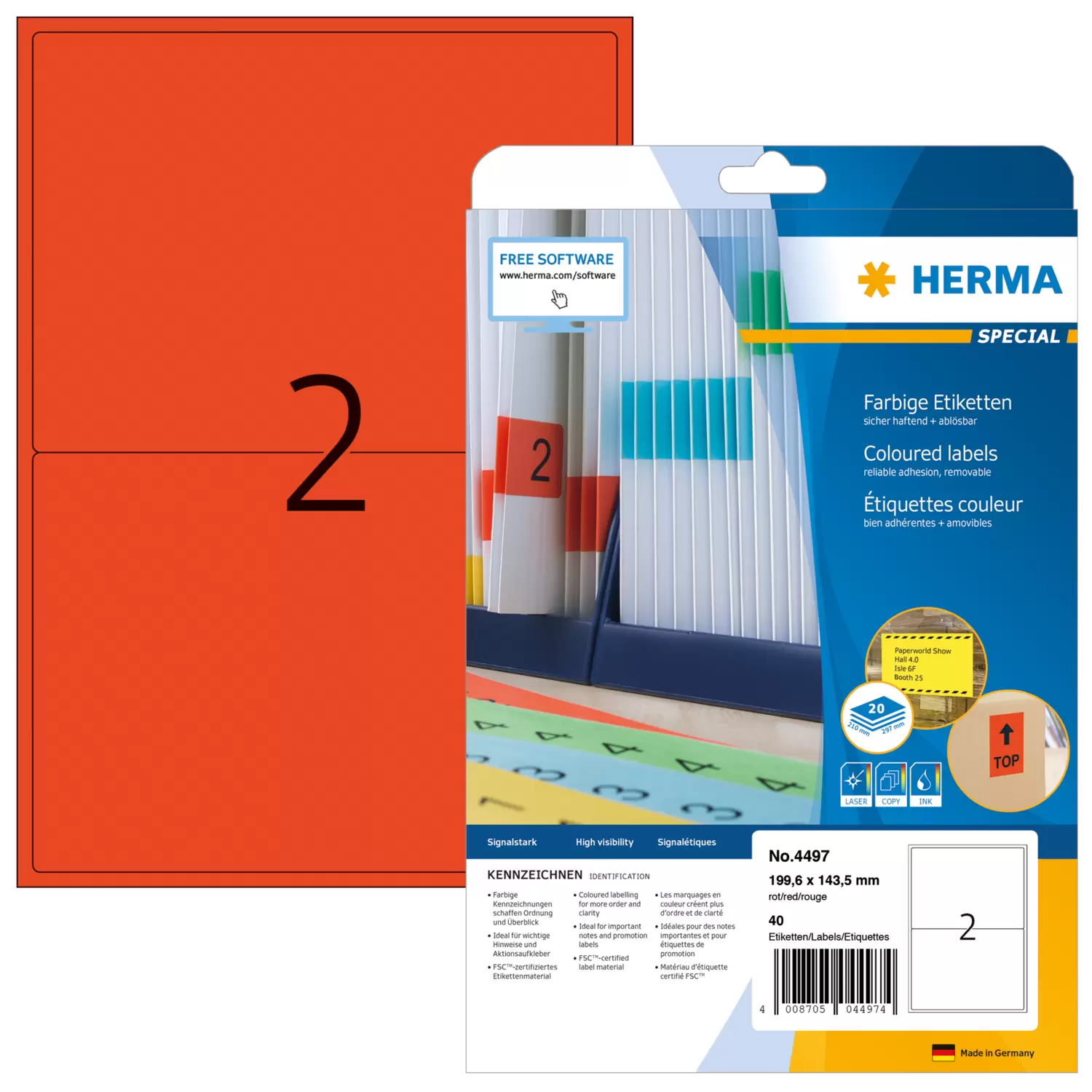 Gekleurde etiketten, A4, 199,6 x 143,5 mm, rood, verwijderbaar