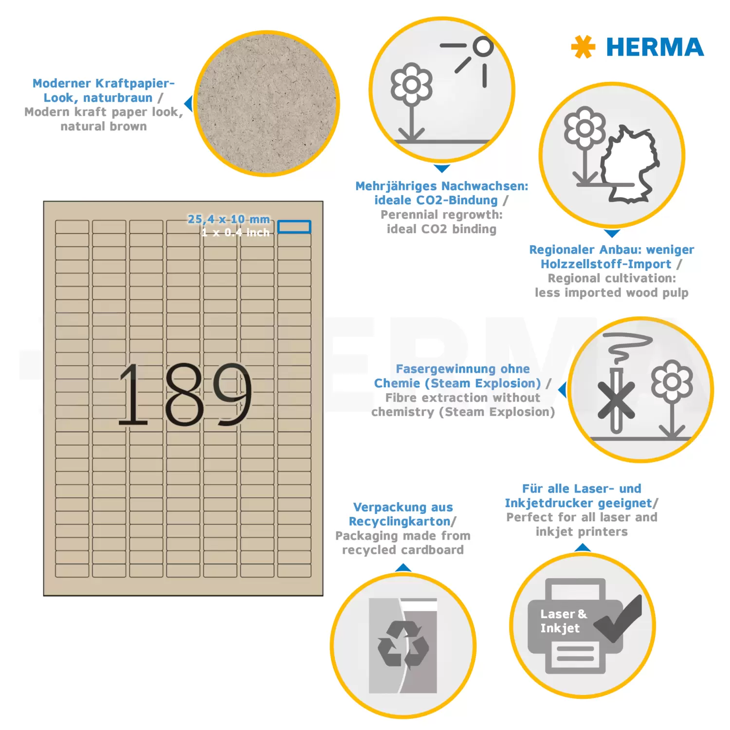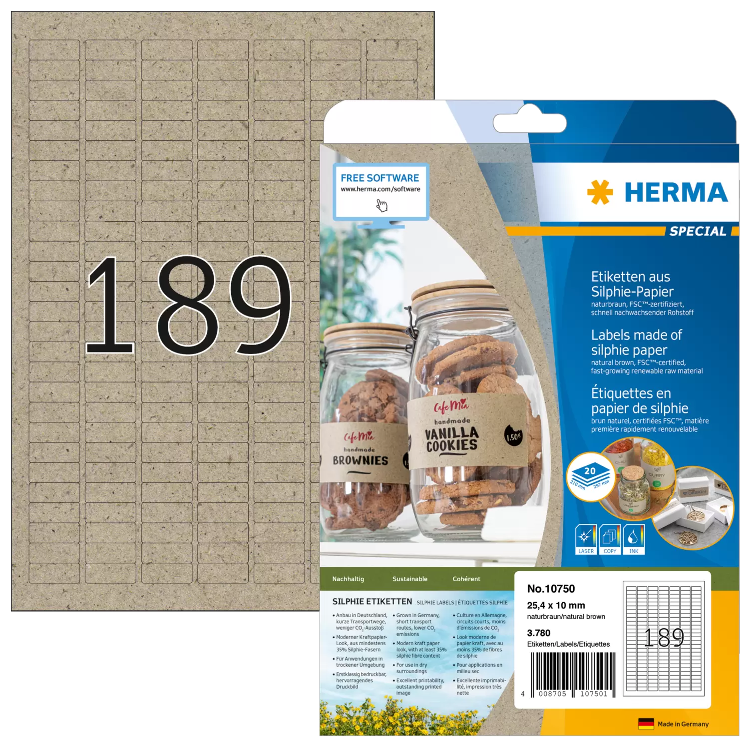 Etiketten van silphie-papier, A4, 25,4 x 10 mm, naturel bruin, permanent hechtend