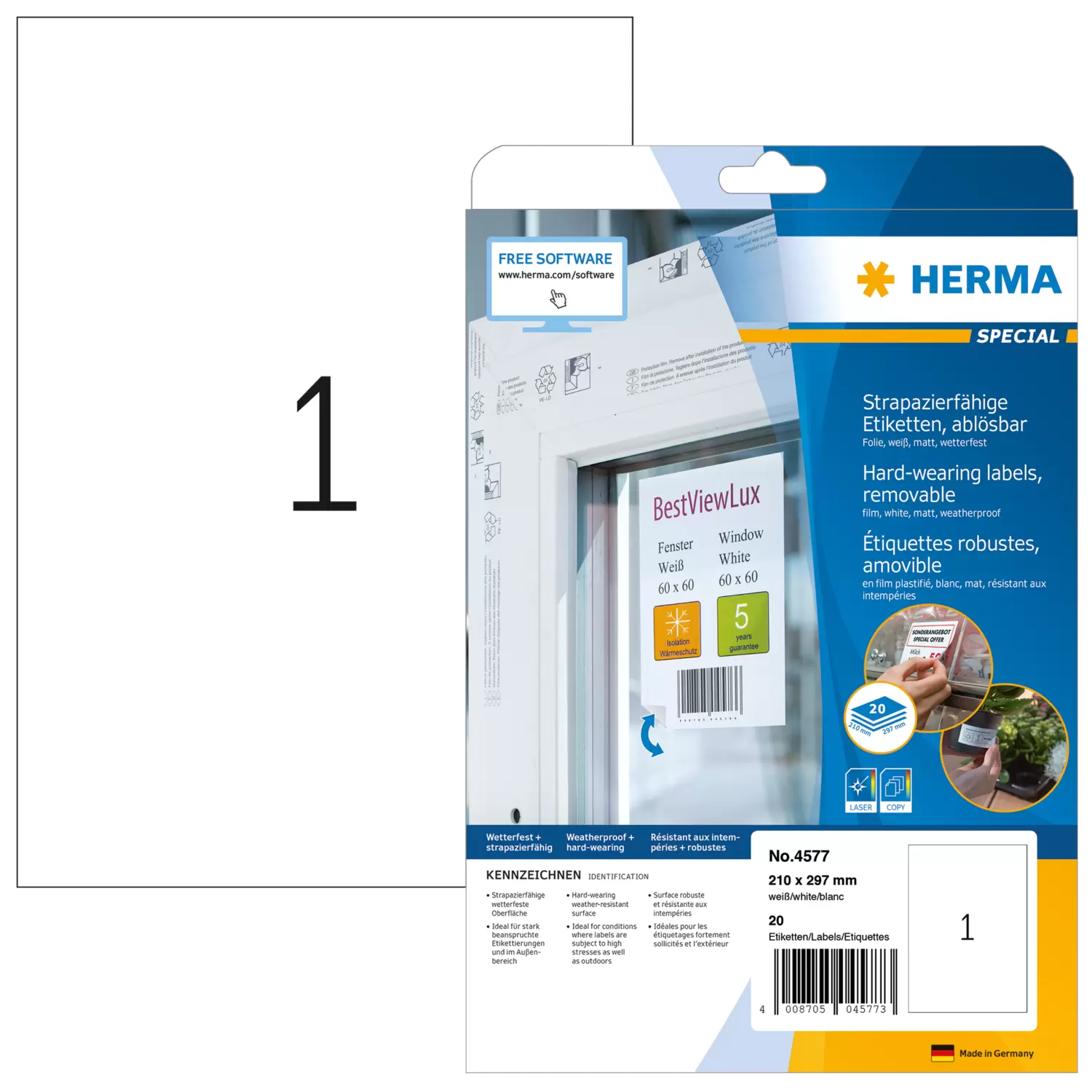 Weervaste folie-etiketten, A4, 210,0 x 297,0 mm, verwijderbaar