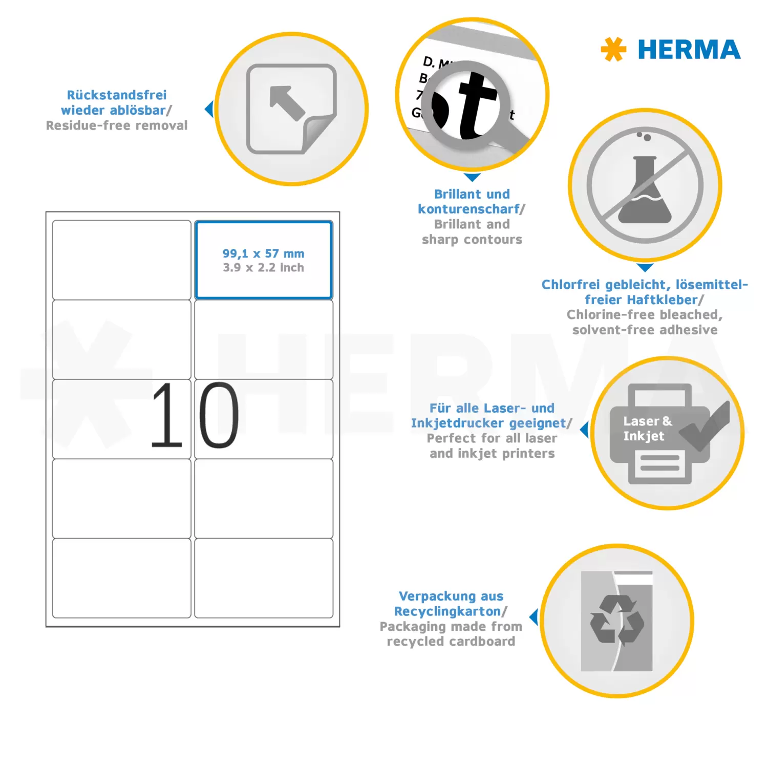 Verwijderbare adresetiketten, A4, 99,1 x 57 mm