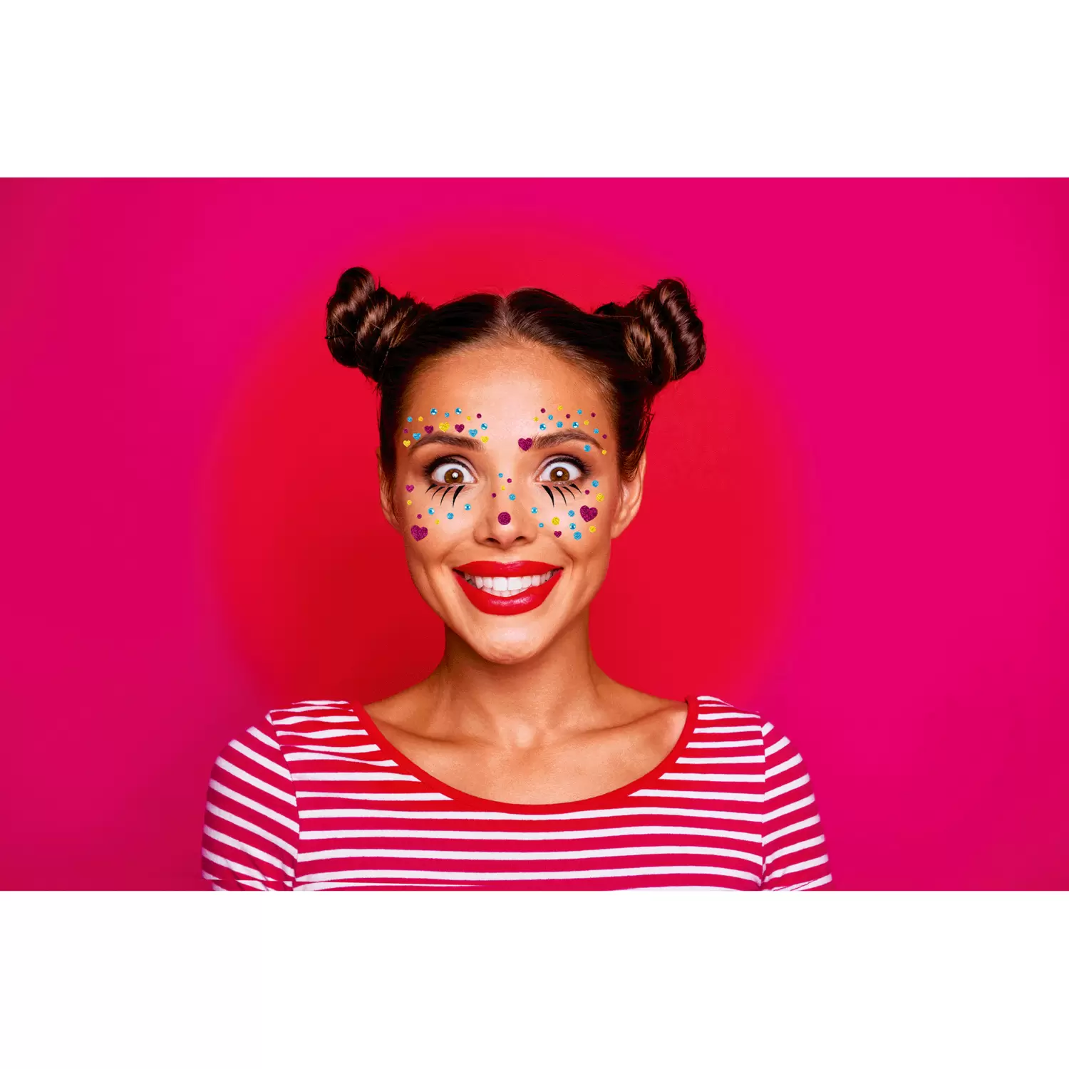 • Zorg voor een schitterende presentatie met onze stylish, glitterende Face Art stickers