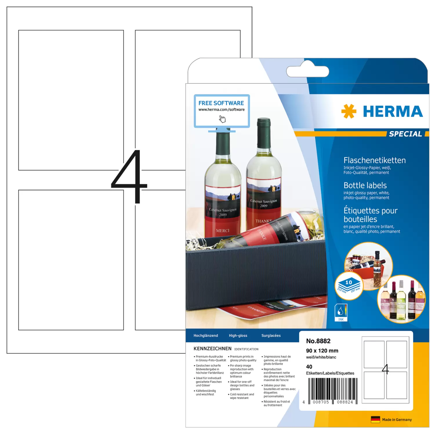 Flesetiketten, inkjet, A4, 90 x 120 mm, van glossy-papier, wit, permanent hechtend