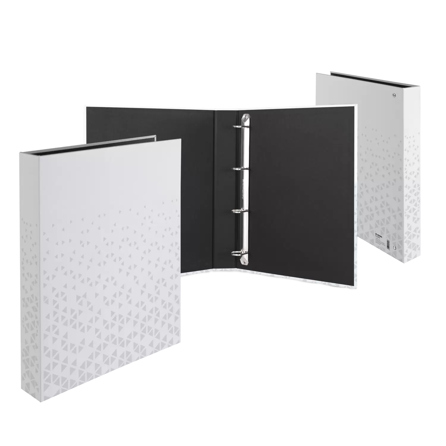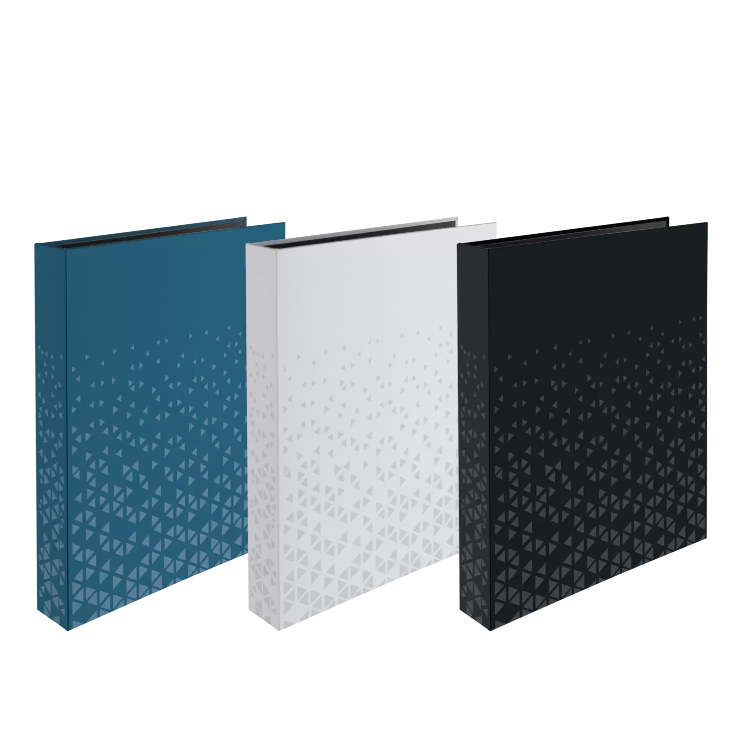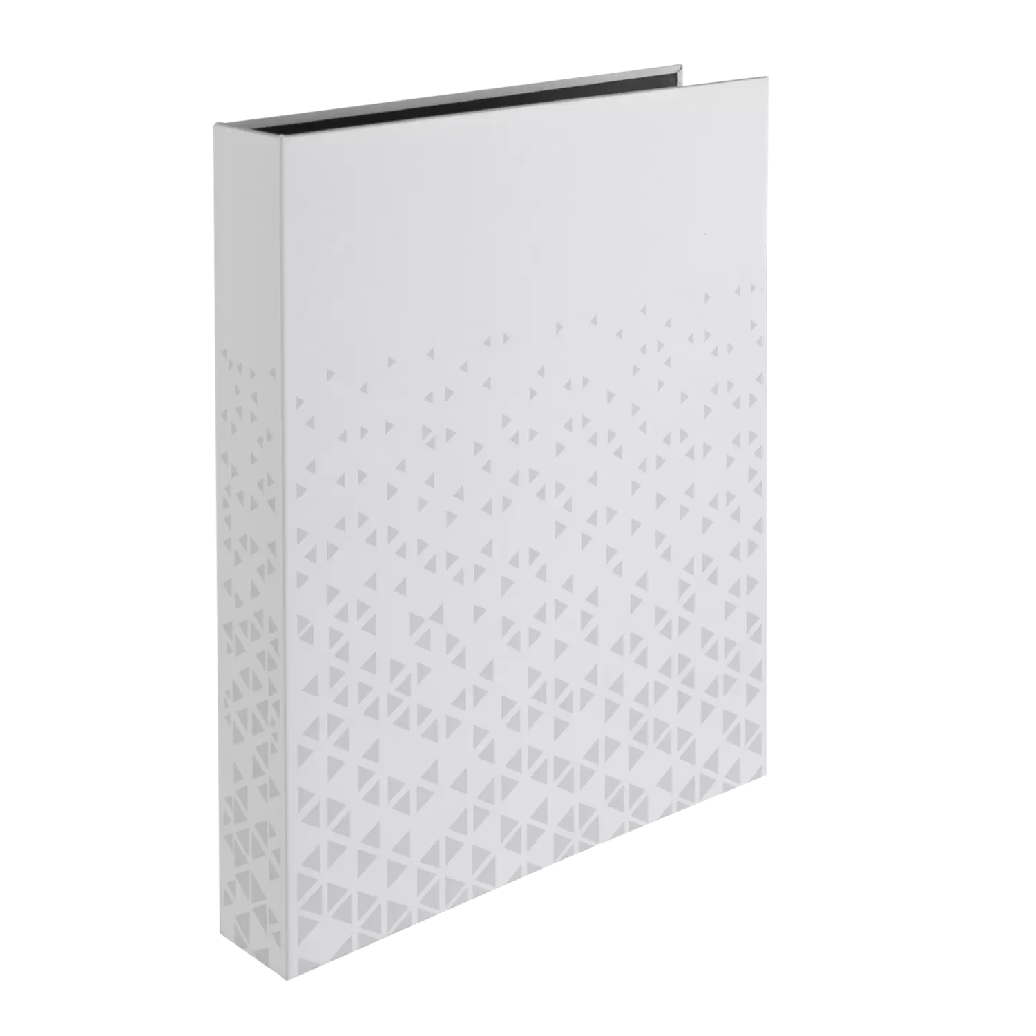Design ontmoet functie: het fotoboek dat ordenen stijlvol maakt! De perfecte keuze voor iedereen die waarde hecht aan stijl en functionaliteit. Het met folie afgewerkte driehoekige patroon in de kleur wit en het fluweelzachte oppervlak zorgen voor een moderne en hoogwaardige uitstraling. Het stevige karton beschermt de inhoud op betrouwbare wijze, terwijl het 4-rings mechanisme ideaal is voor foto- en brochureomslagen. Met een praktische rugbreedte van 46 mm biedt het veel ruimte voor foto's en documenten, het ziet er tegelijkertijd elegant uit en is ruimtebesparend.