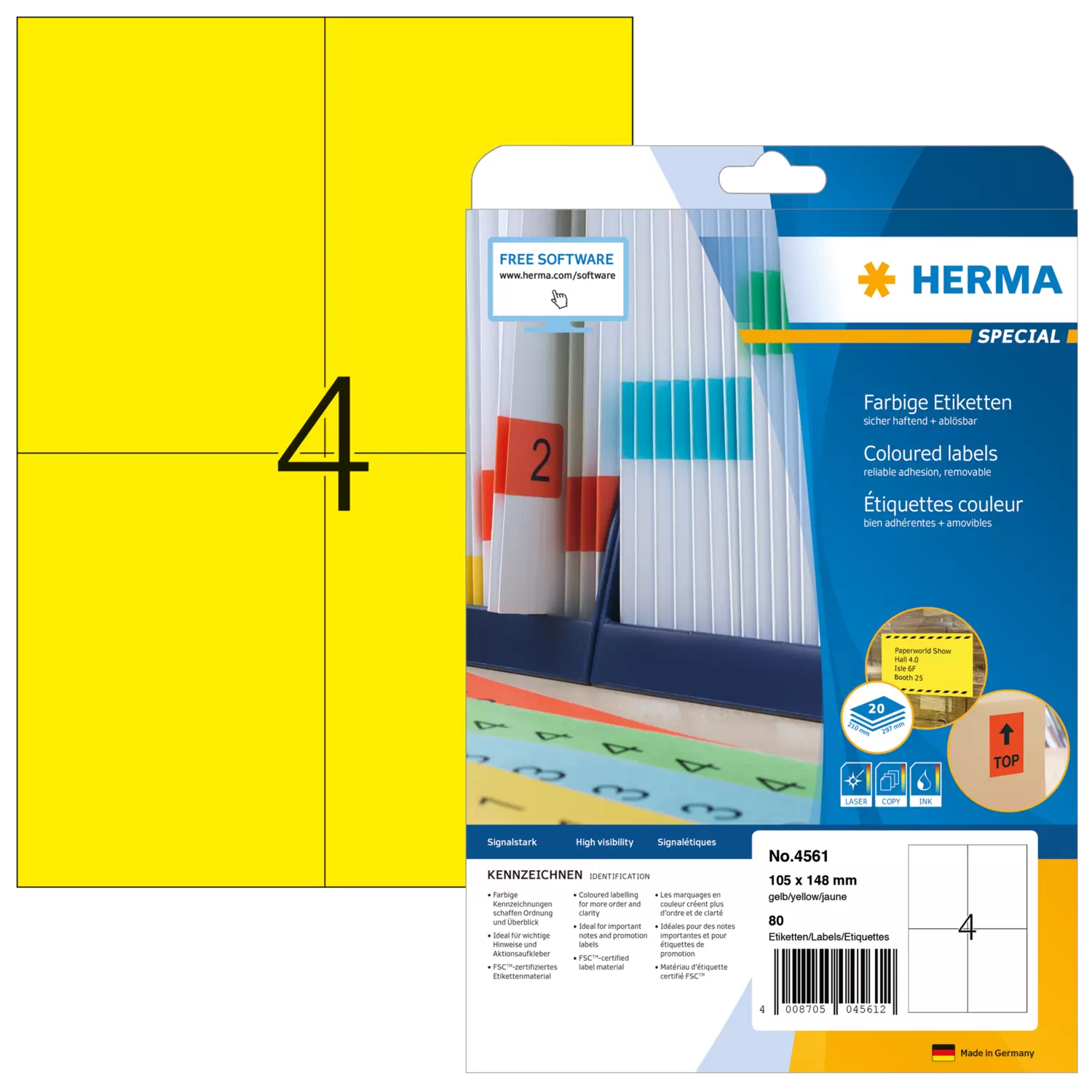 Gekleurde etiketten op A4-vellen, zelfklevend. Ideaal voor het labelen met signaalfunctie, bijv. waarschuwingsstickers, spoedaantekeningen, adreswijzigingen, kleurcodering, acties. Milieuvriendelijk: FSC® Mix Credit-gecertificeerd, chloorvrij gebleekt, oplosmiddelvrije contactlijm. Etiketten zijn 100 % recyclebaar via het oud papier, verpakking van gerecycled karton. Zeer goede drukresultaten op alle laser- en inkjetprinters, kopieerapparaten, kleurenlaserprinters en kleurenkopieerapparaten. Storingvrije verwerking dankzij veiligheidsrand rondom en optimale vlakligging. Gratis softwareoplossingen: www.herma.com/software.