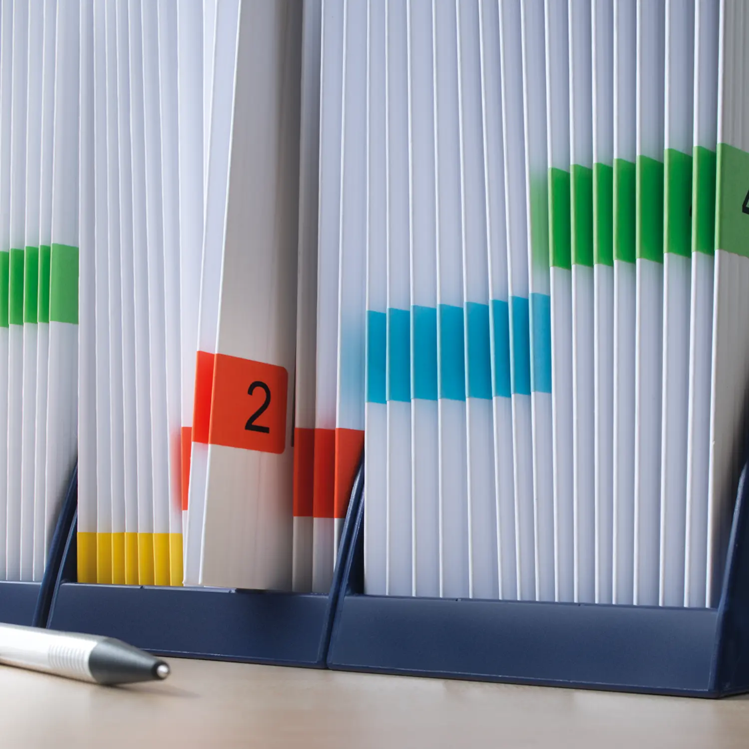 - Gekleurde etiketten zorgen voor orde en overzicht, ideaal ook voor het benadrukken van belangrijke informatie