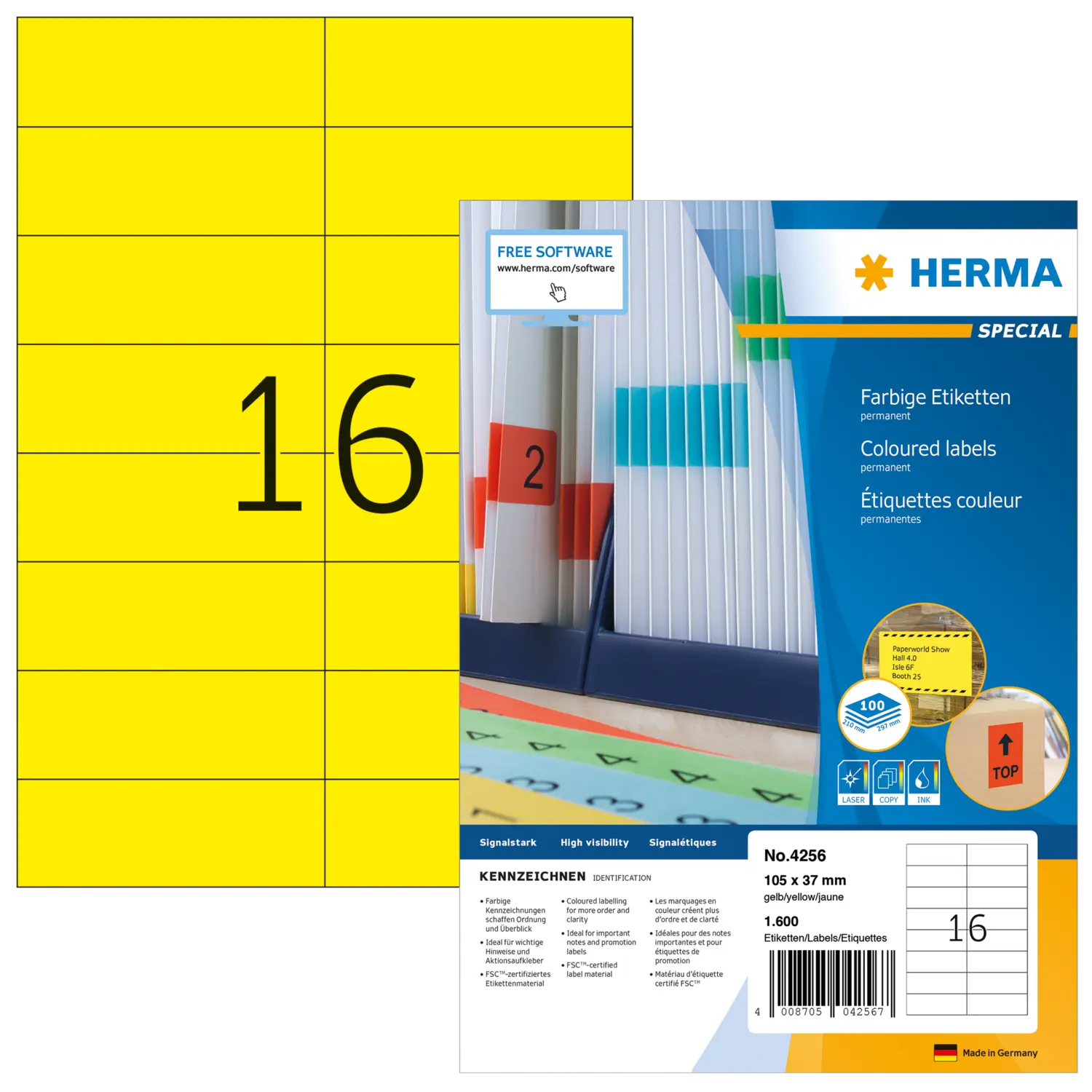 Gekleurde etiketten op A4-vellen, zelfklevend. Ideaal voor het labelen met signaalfunctie, bijv. waarschuwingsstickers, spoedaantekeningen, adreswijzigingen, kleurcodering, acties. Milieuvriendelijk: FSC® Mix Credit-gecertificeerd, chloorvrij gebleekt, oplosmiddelvrije contactlijm. Etiketten zijn 100 % recyclebaar via het oud papier, verpakking van gerecycled karton. Zeer goede drukresultaten op alle laser- en inkjetprinters, kopieerapparaten, kleurenlaserprinters en kleurenkopieerapparaten. Storingvrije verwerking dankzij veiligheidsrand rondom en optimale vlakligging. Gratis softwareoplossingen: www.herma.com/software.